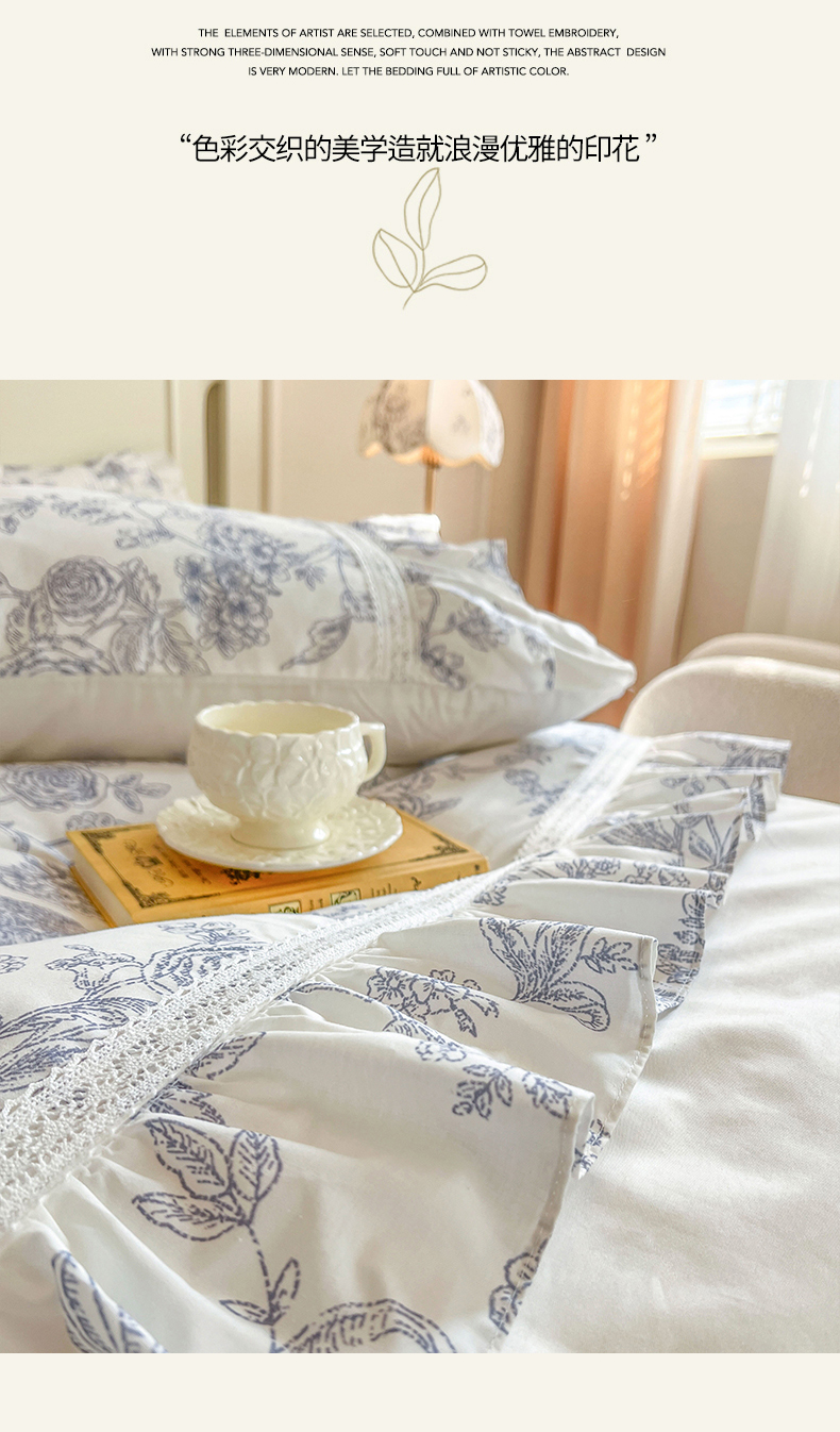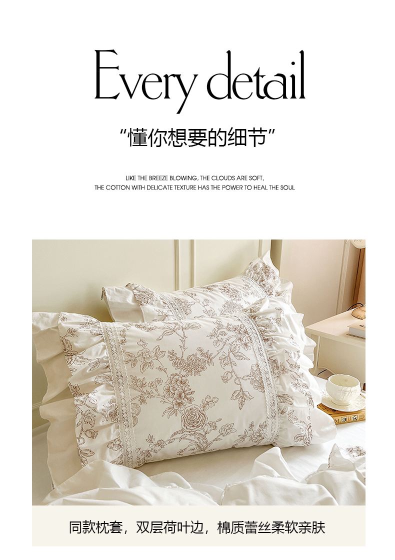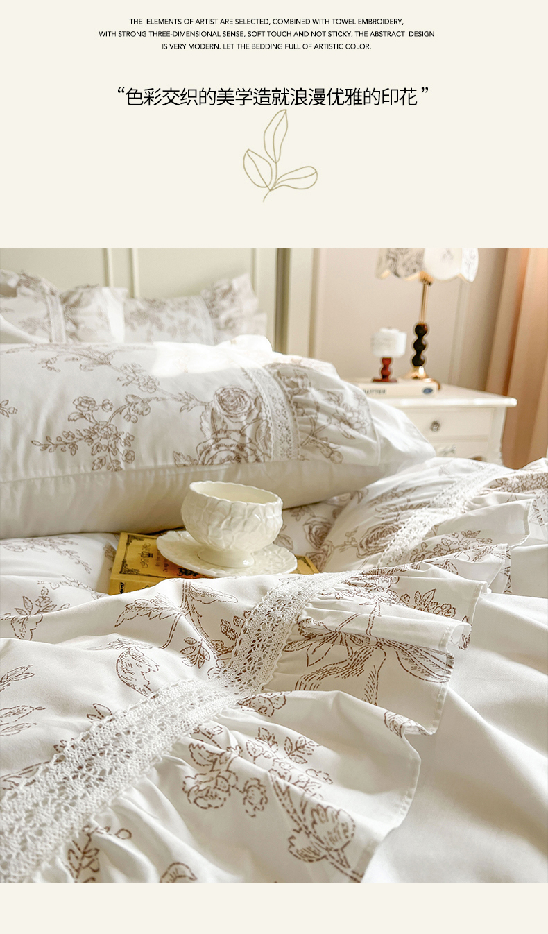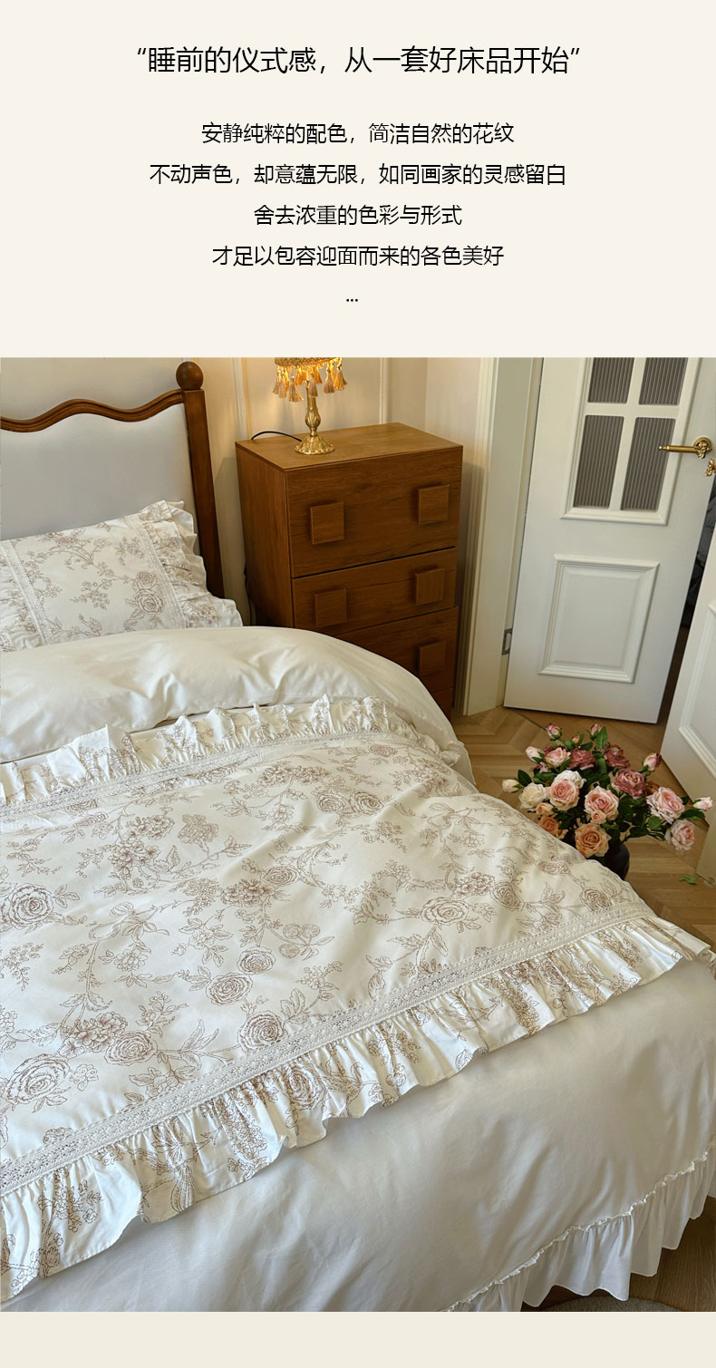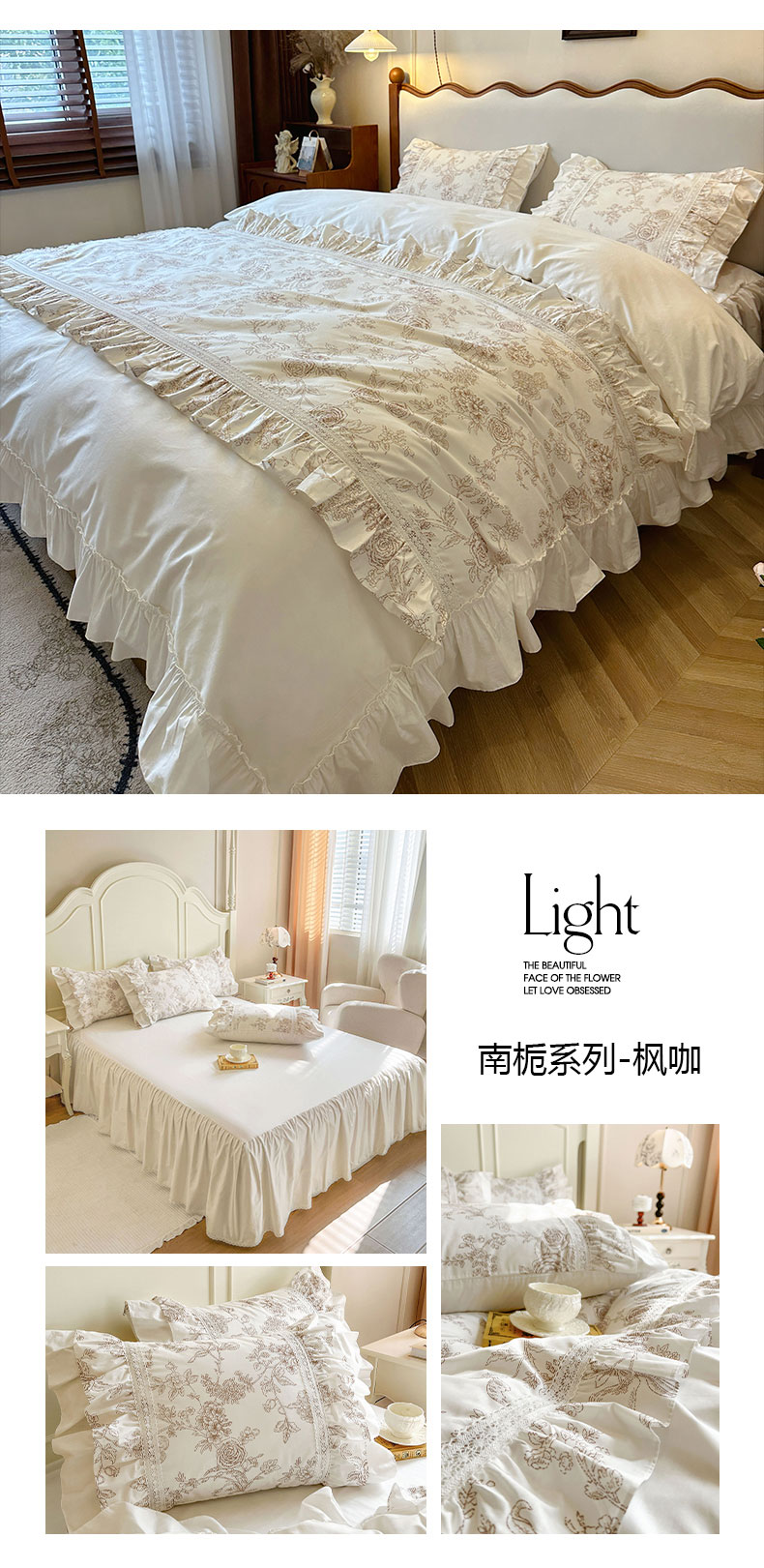 (总)惯盈家纺2025新款全棉复古蕾丝床裙款四件套南栀系列(含买家秀),南栀-枫咖,南栀-云蓝
