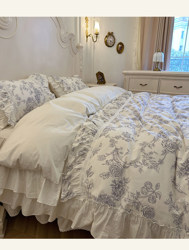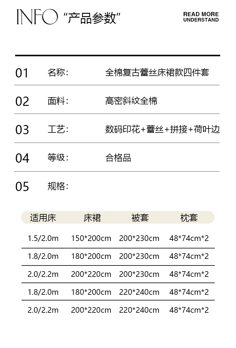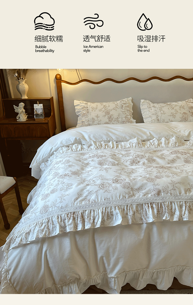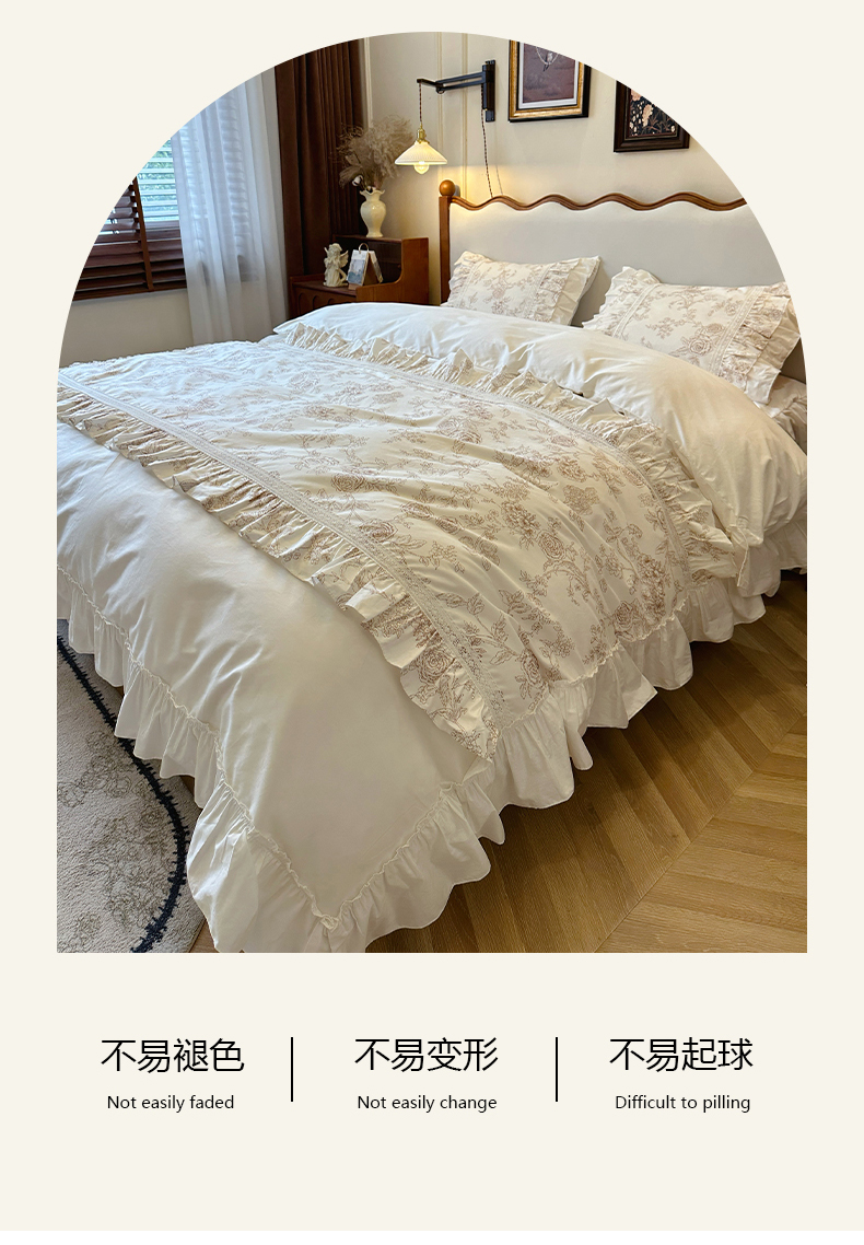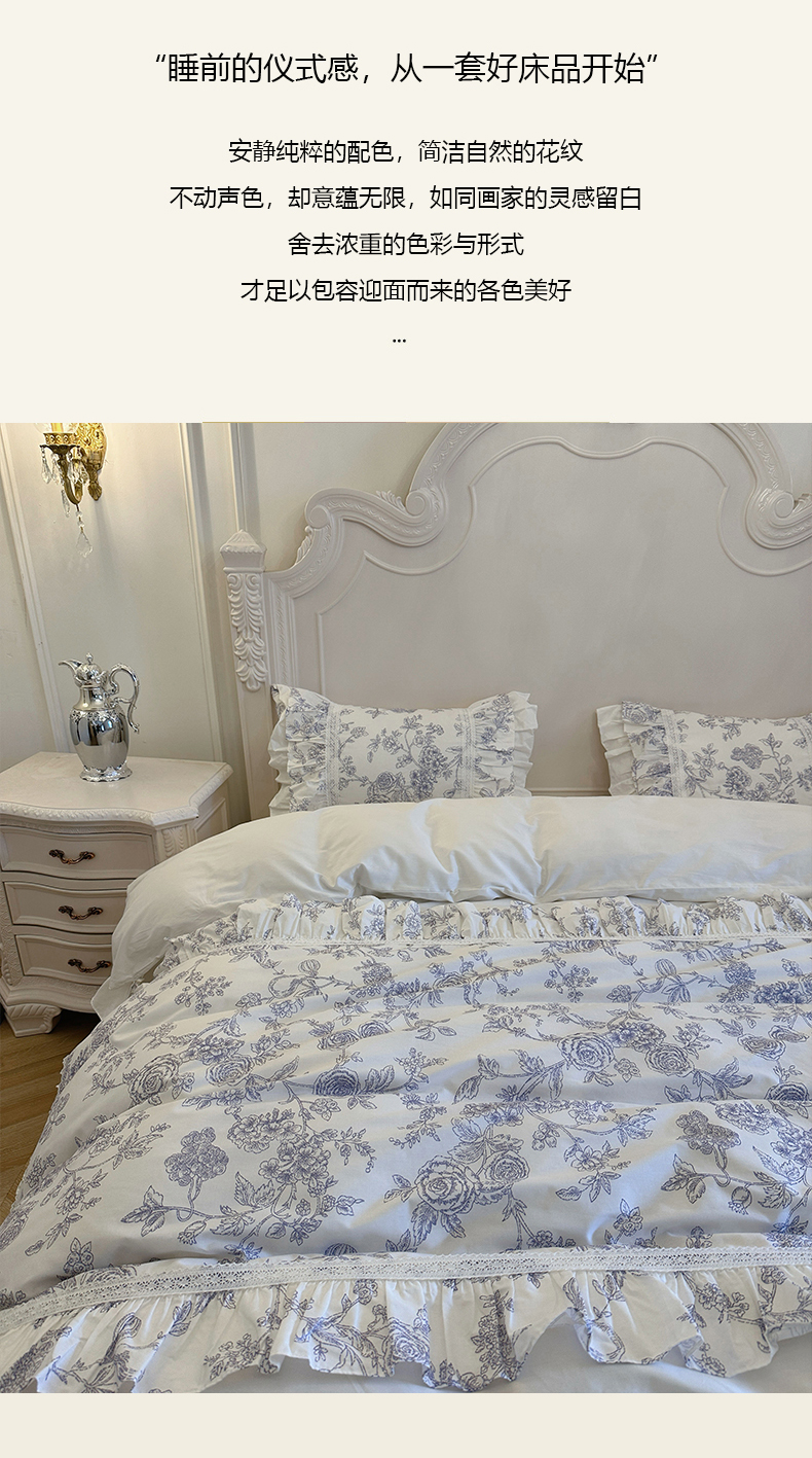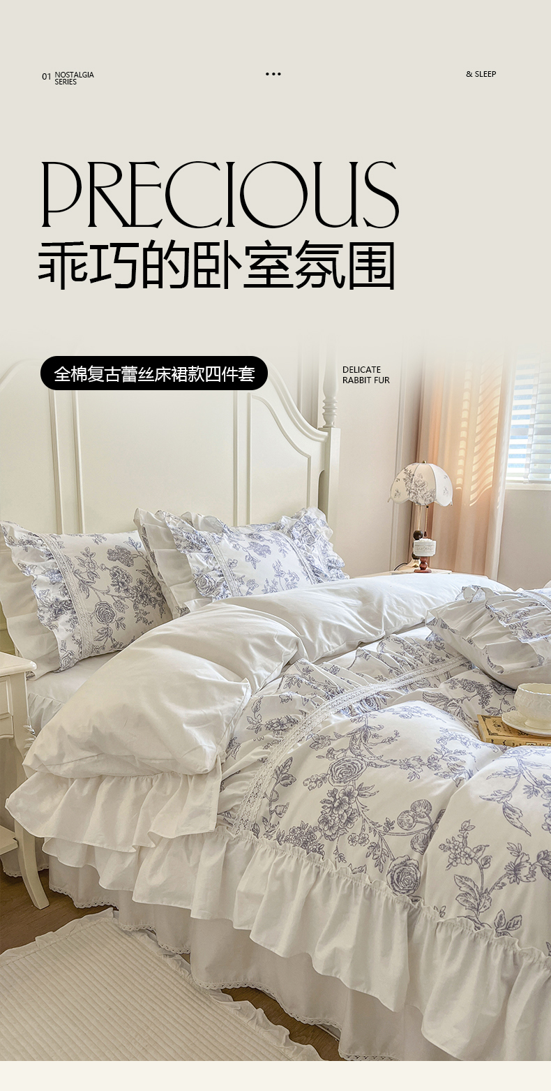 商品名称:(总)惯盈家纺2025新款全棉复古蕾丝床裙款四件套南栀系列(含买家秀)