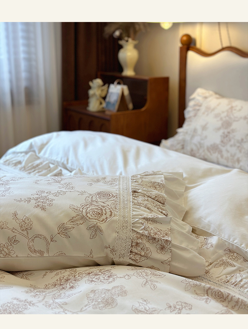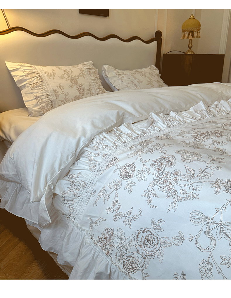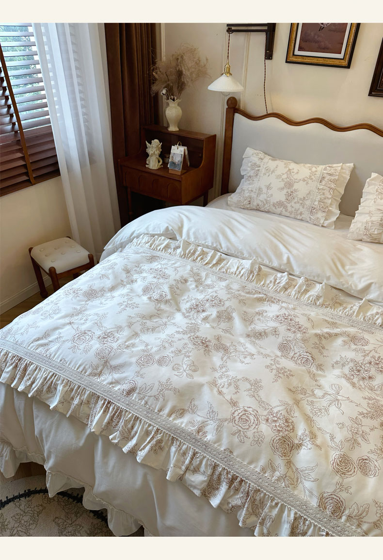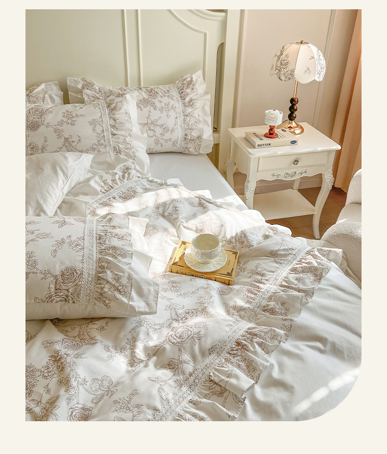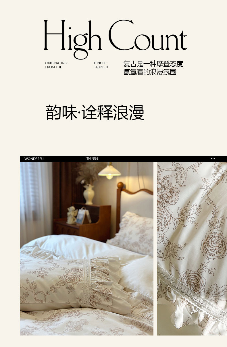 (总)惯盈家纺 2025新款法式镂空花边全棉四件套-黎雾沉香【含买家秀】,黎雾沉香-梨褐,黎雾沉香-烟墨