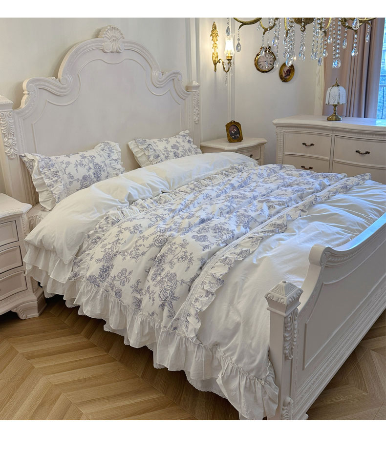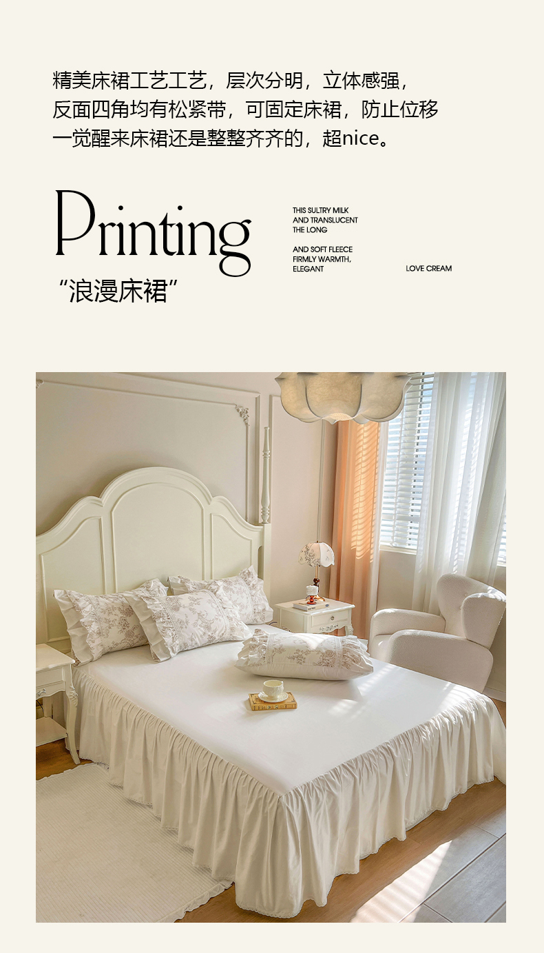 (总)惯盈家纺 2025新款全棉法式数码印花四件套床裙款洛丽可系列,白,卡其,绿