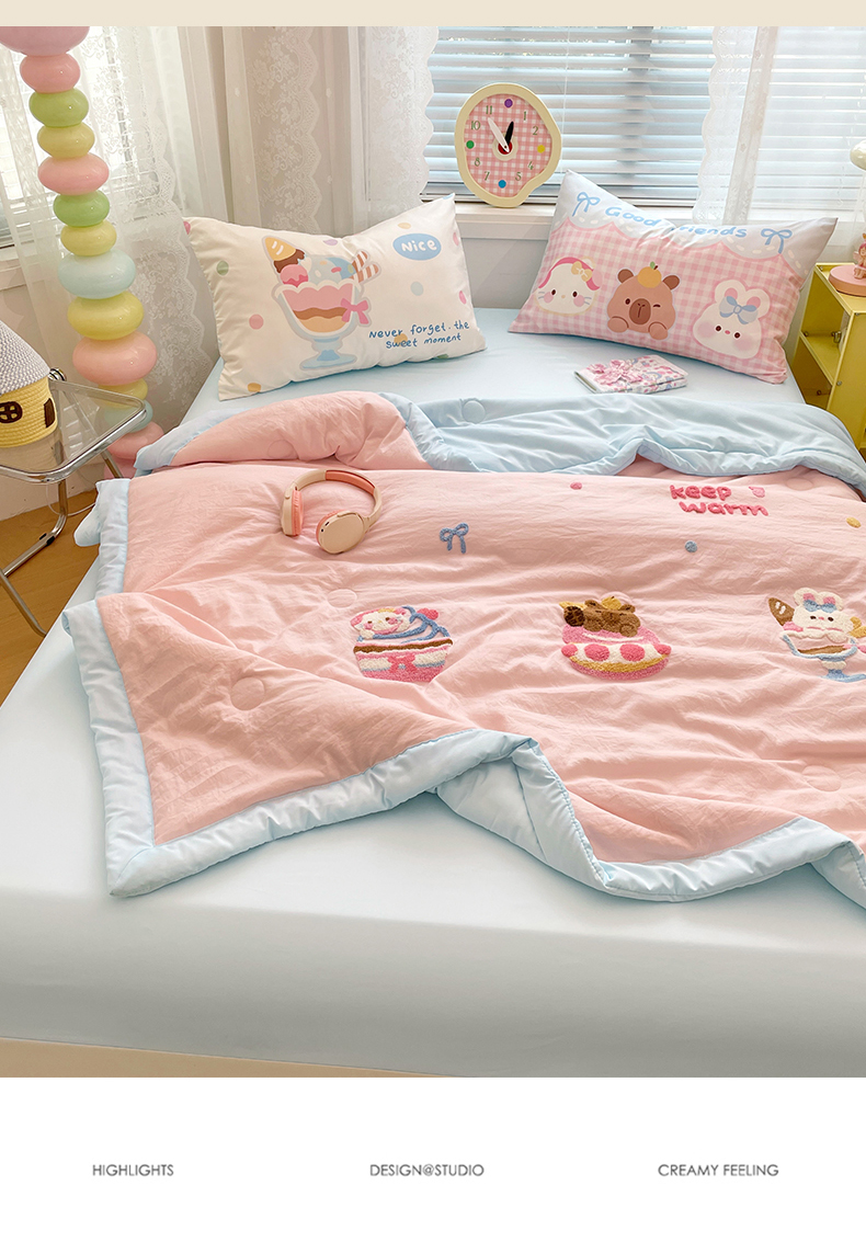 商品名称:康纳利 2025新款水洗云朵棉印花卡通夏被 蛋糕碰碰会