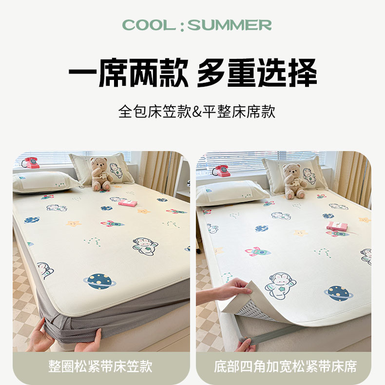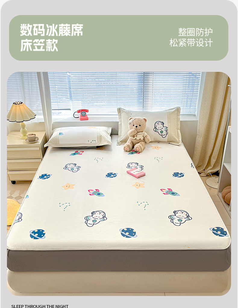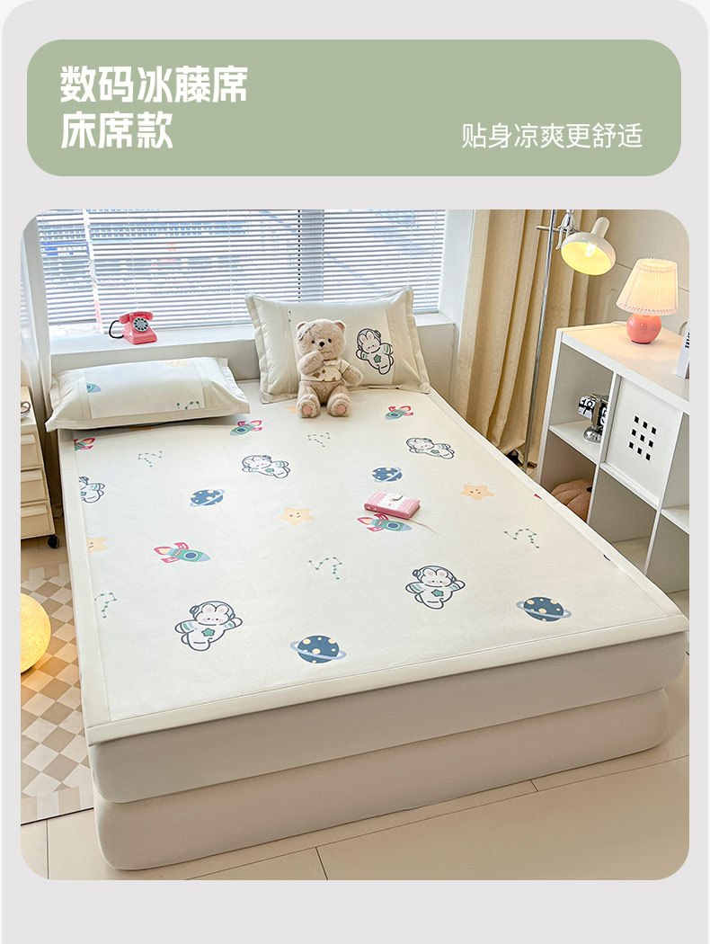 鑫琪莱家纺 2025新款数码印花加密冰藤凉席三件套 床席款-漫步星空