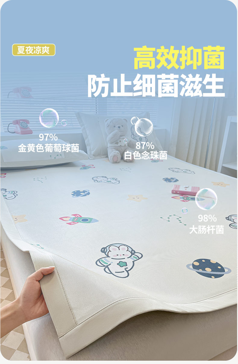 商品名称:鑫琪莱家纺 2025新款数码印花加密冰藤凉席三件套 床席款-漫步星空