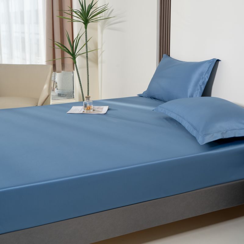 • 91家纺网 家纺一手货源 找家纺 馨乐家纺 2025款水洗天丝纯色床笠 月光蓝