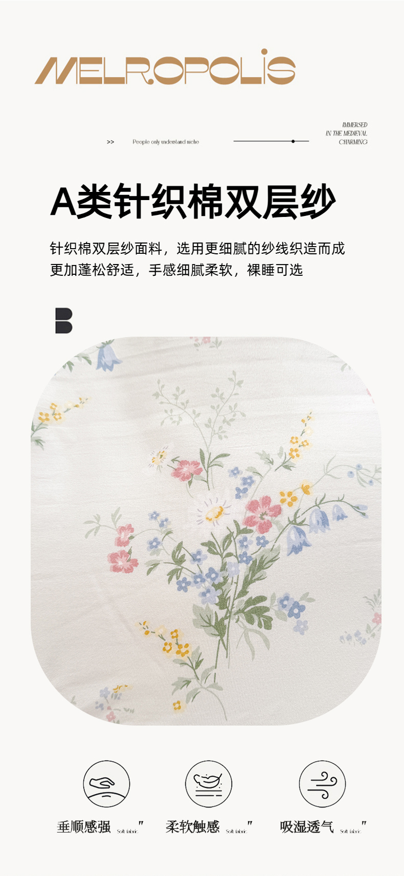 (总)铭浩家纺 2025新款A类针织棉双层纱四件套,蝶梦,花漾,萌趣,暮念,妮卡,清欢,如约,若黎,森屿,挽梦,伊洛,悠然,余笙,紫嫣