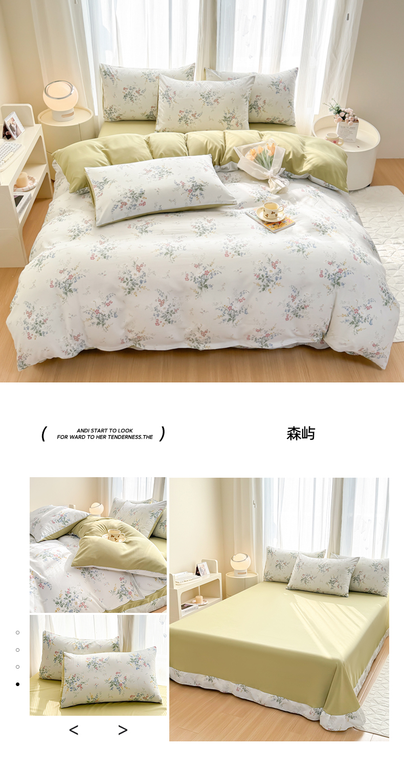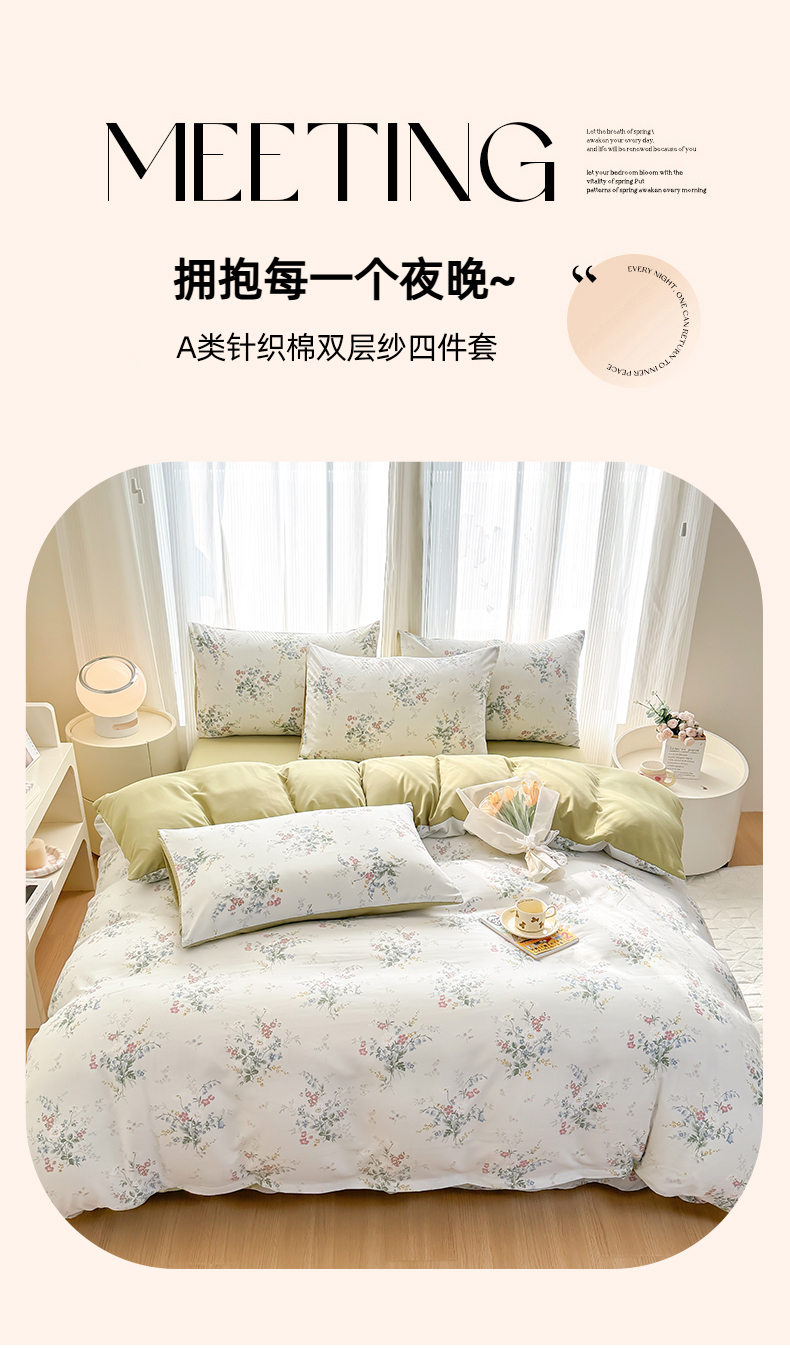 铭浩家纺 2025新款A类针织棉双层纱四件套 森屿