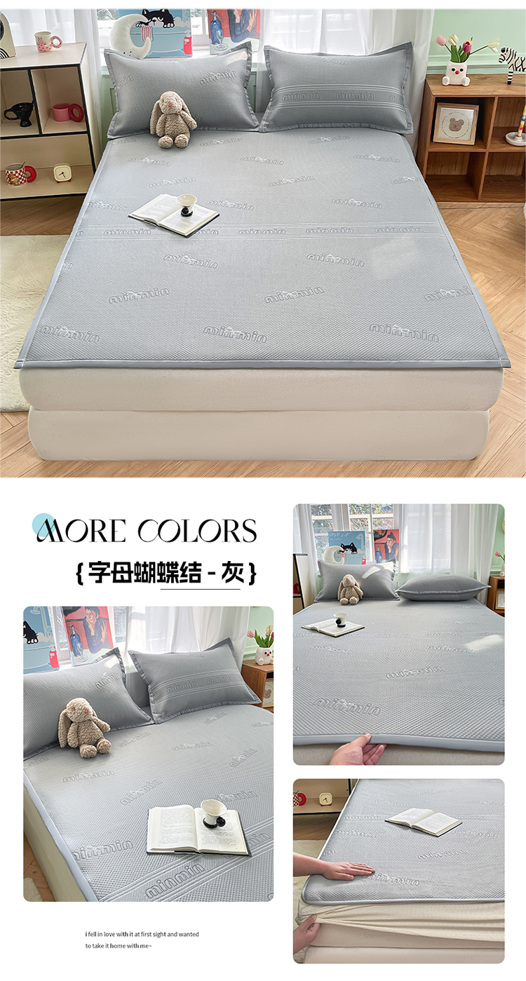 莱米家纺 2025新款冰感凉豆豆凉席 字母蝴蝶结—灰