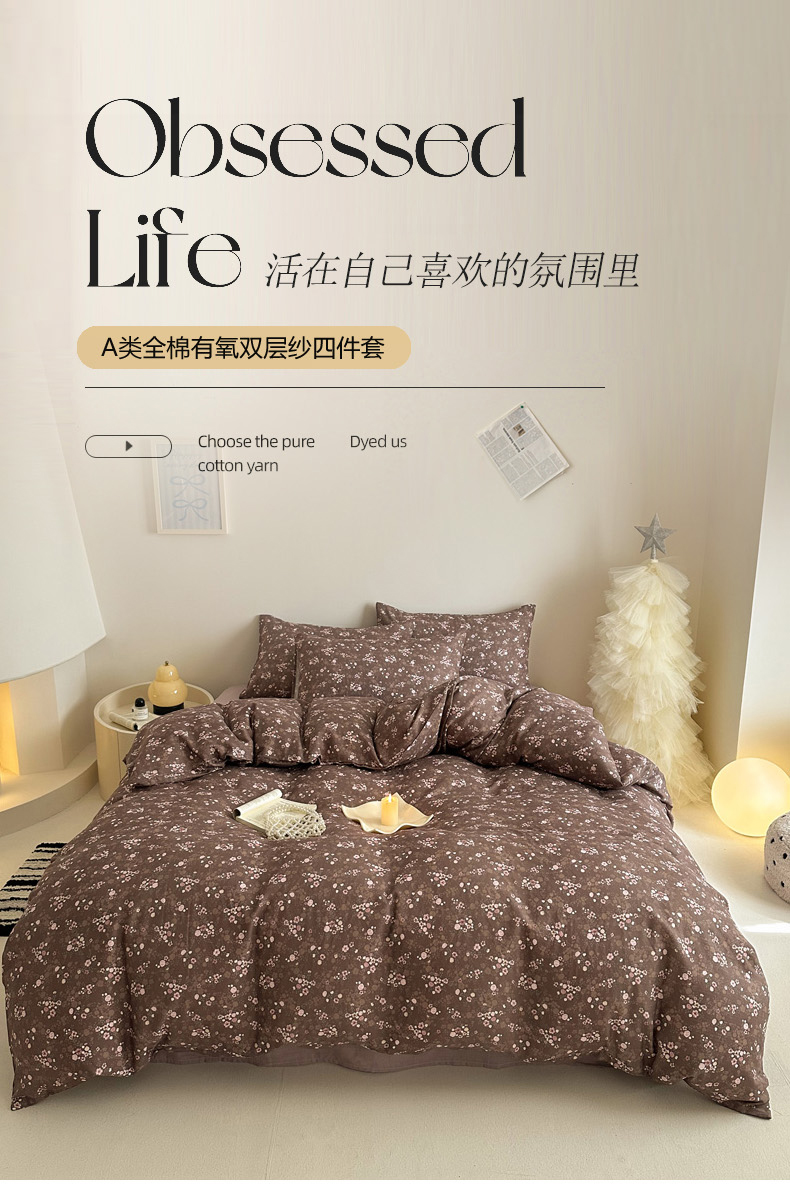 当前位置: 91家纺网 > 商品网购 > 床品套件 > 四件套 > 全棉普通四件套 > 塞纳 2026新款.全棉有氧双层纱四件套-场景二-拾秋-咖