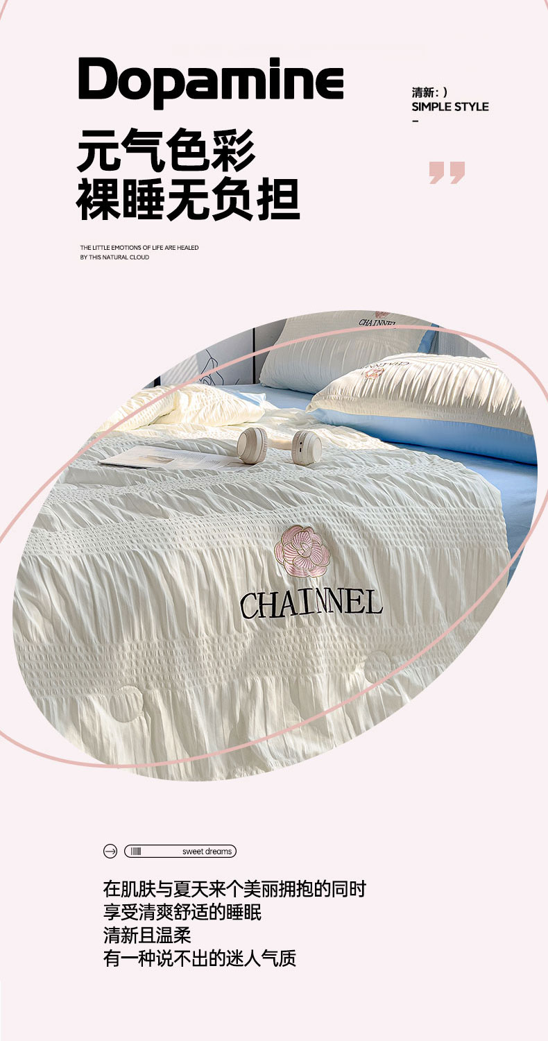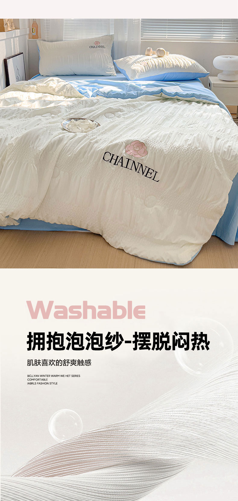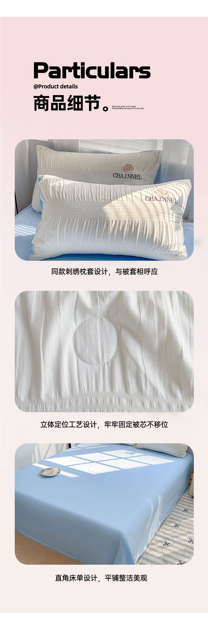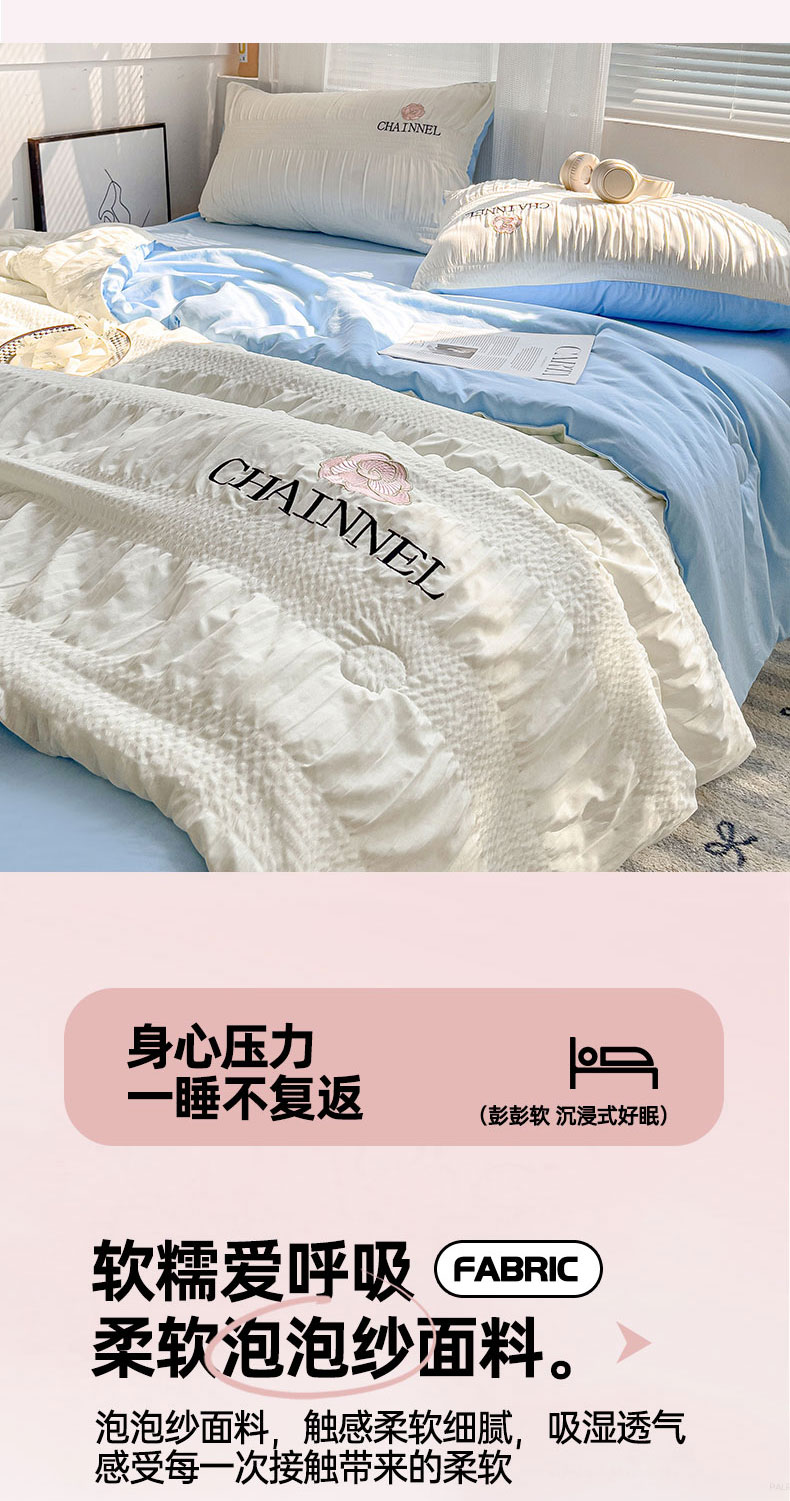 当前位置: 91家纺网 > 商品网购 > 床品套件 > 四件套 > 夏被四件套 > 灰鲸 2025新款泡泡纱南笙刺绣夏被四件套系列 泡泡纱南笙-奶昔白+天空蓝