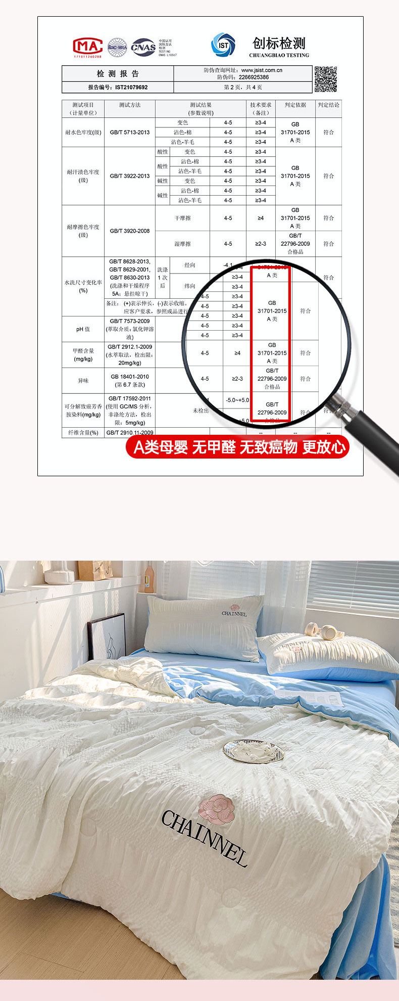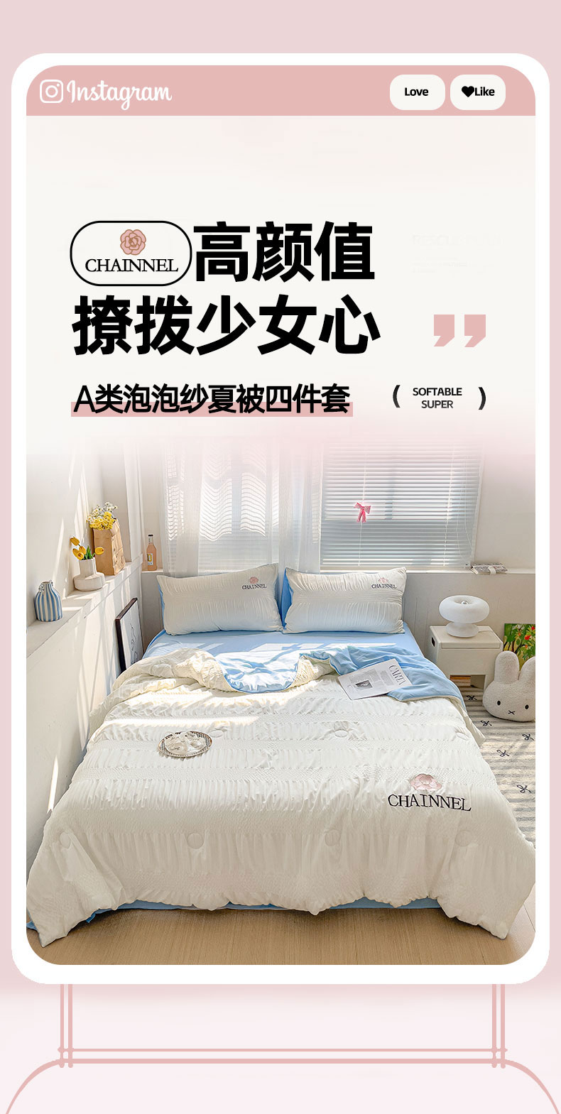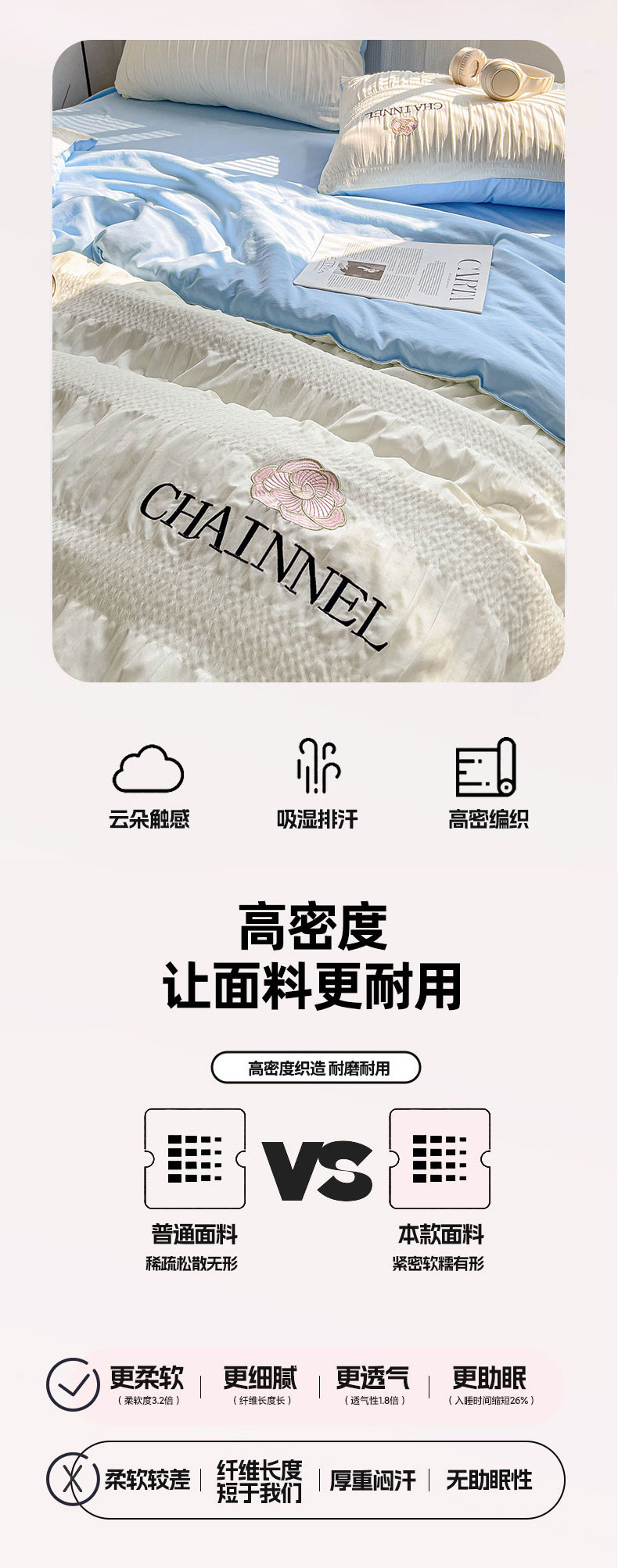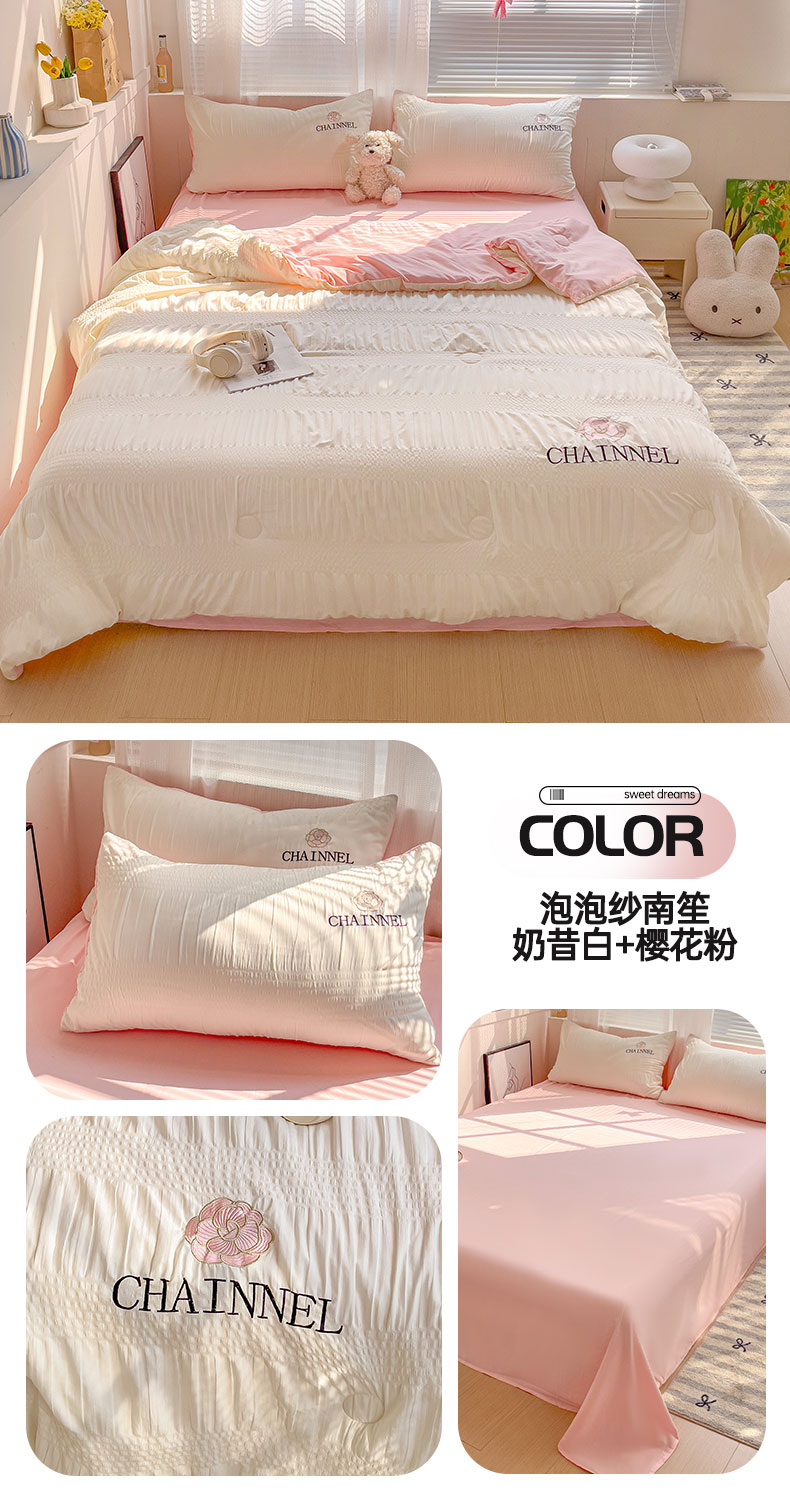 当前位置: 91家纺网 > 商品网购 > 床品套件 > 四件套 > 夏被四件套 > 灰鲸 2025新款泡泡纱南笙刺绣夏被四件套系列 泡泡纱南笙-奶昔白+天空蓝