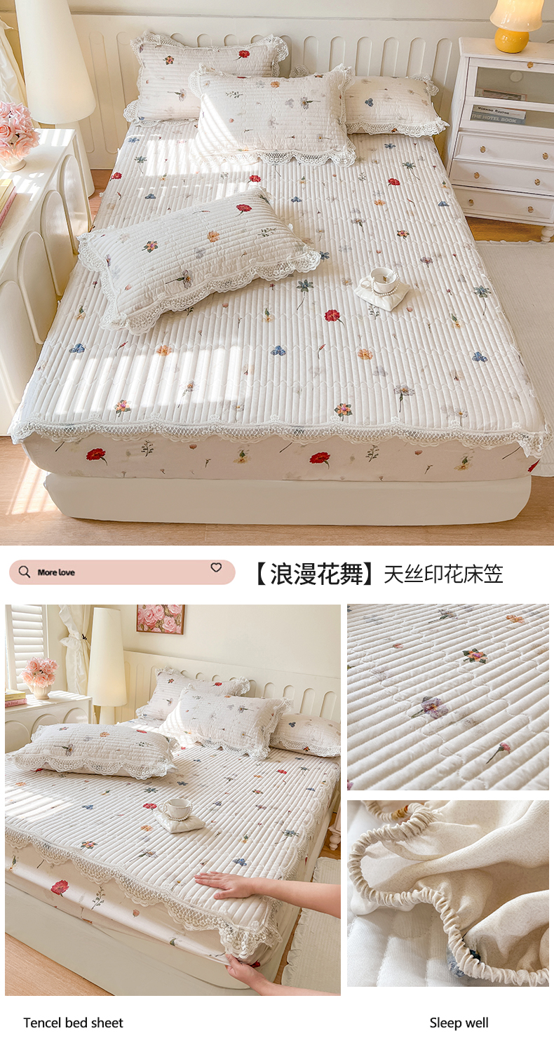 商品名称:麒豆豆 2025新款天丝印花床笠 浪漫花舞