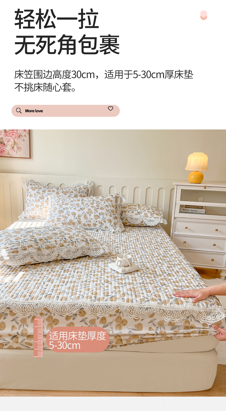 (总)麒豆豆 2025新款全棉蕾丝边床裙款床笠-晨暮花间,晨暮花间-绯红,晨暮花间-粉色,晨暮花间-麦绿,晨暮花间-米色,晨暮花间-浅紫,晨暮花间-雾蓝