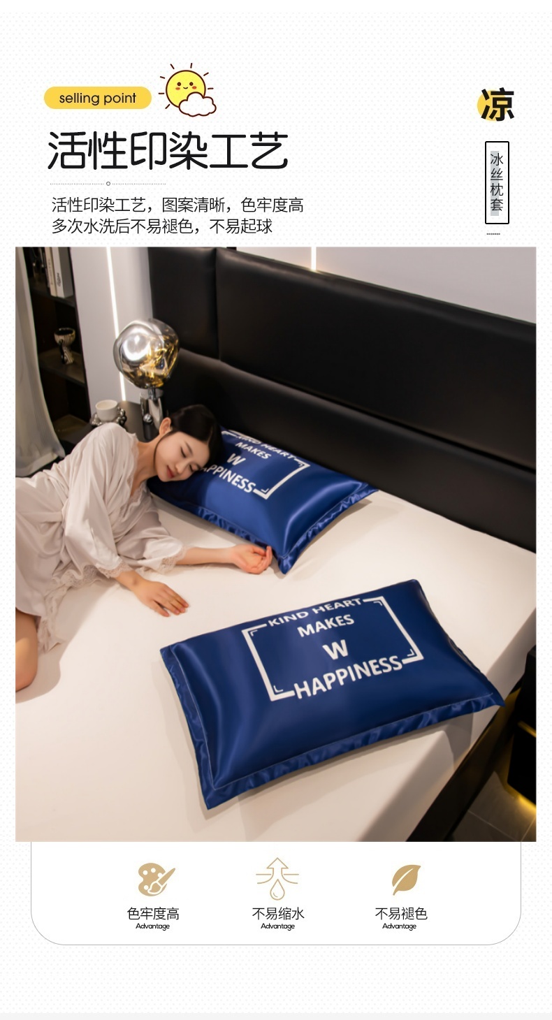商品名称:圣比熊 2025新款可水洗冰丝卡通枕套宿舍48x74cm单人凉爽枕头套 幸福时刻