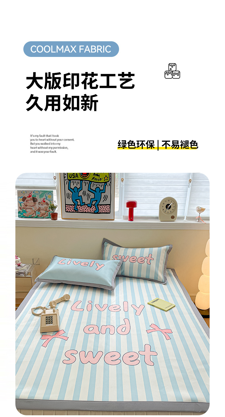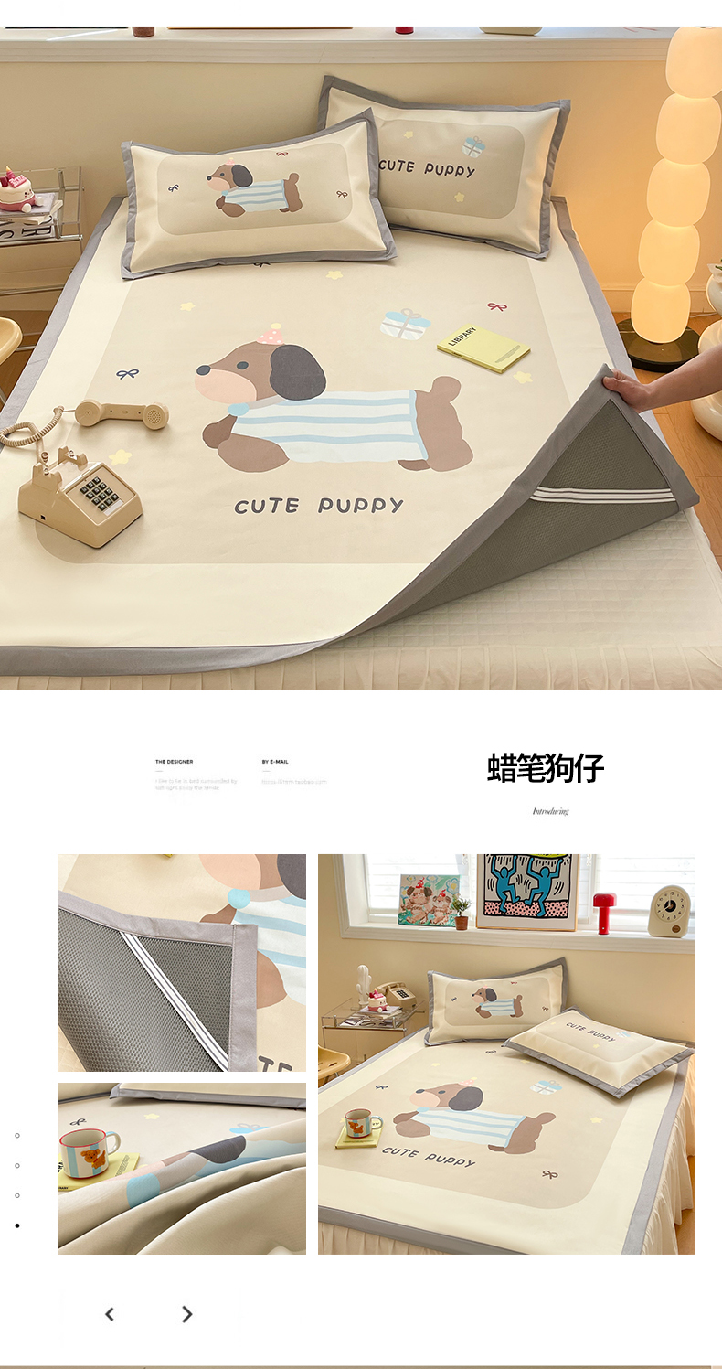 川悦生活 2025新款大版凉感冰丝席三件套 豆宝小熊