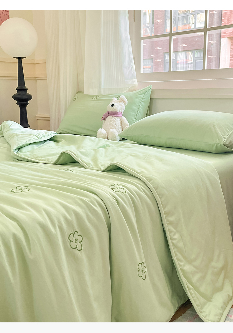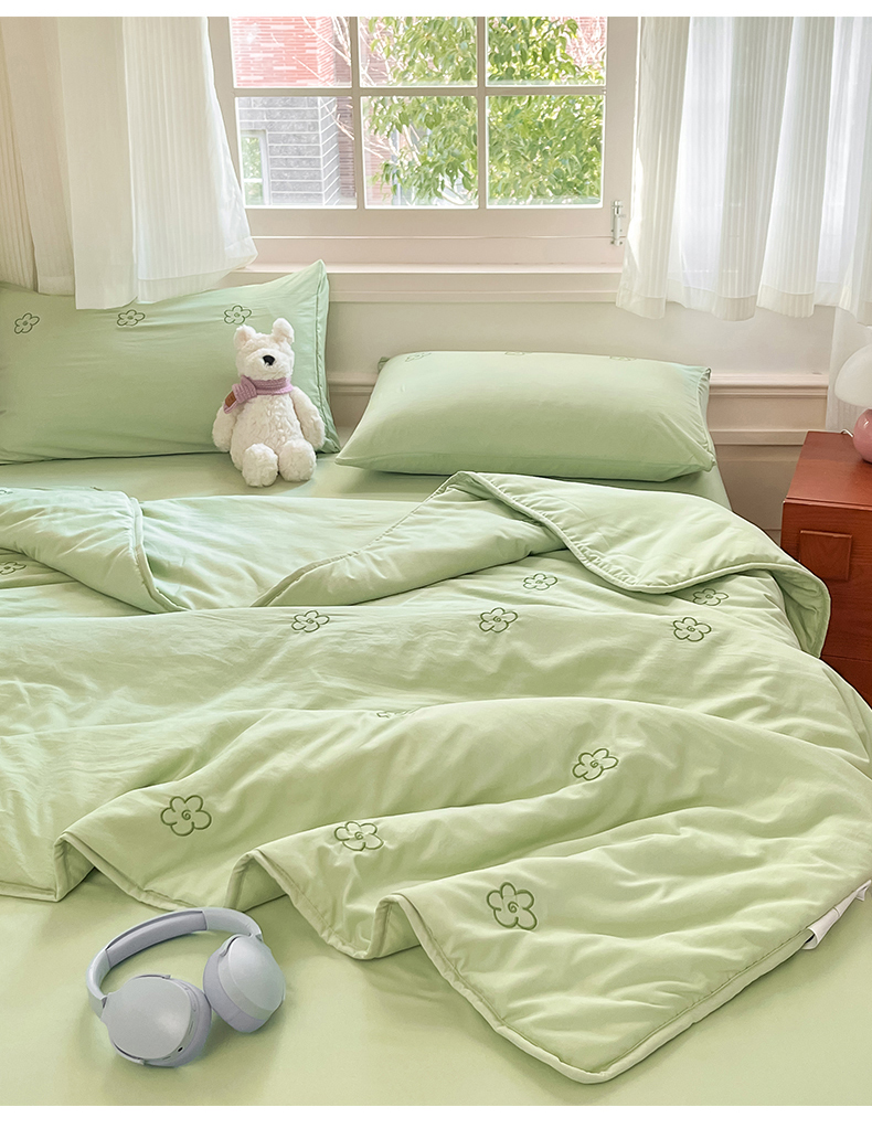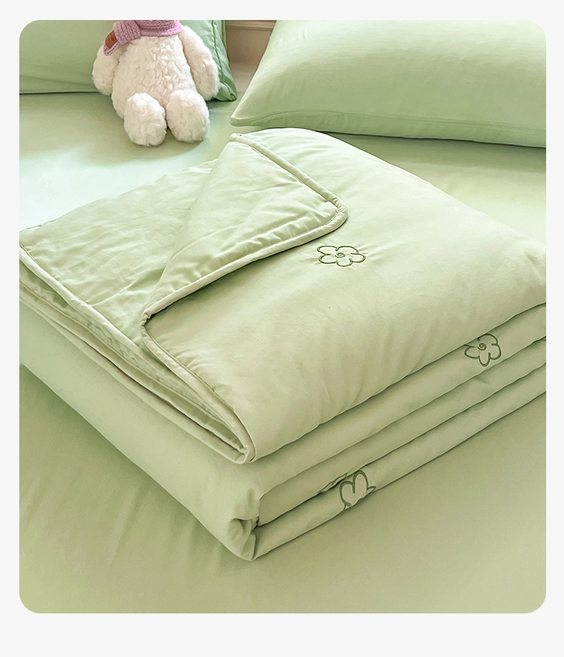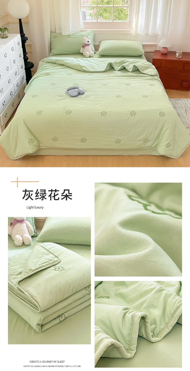 盛秋家纺 2026新款A类水洗棉刺绣夏被 灰绿花朵