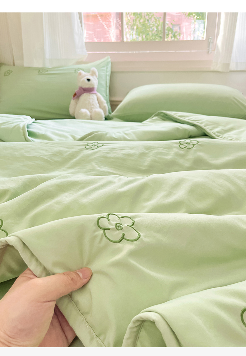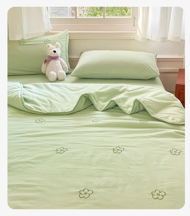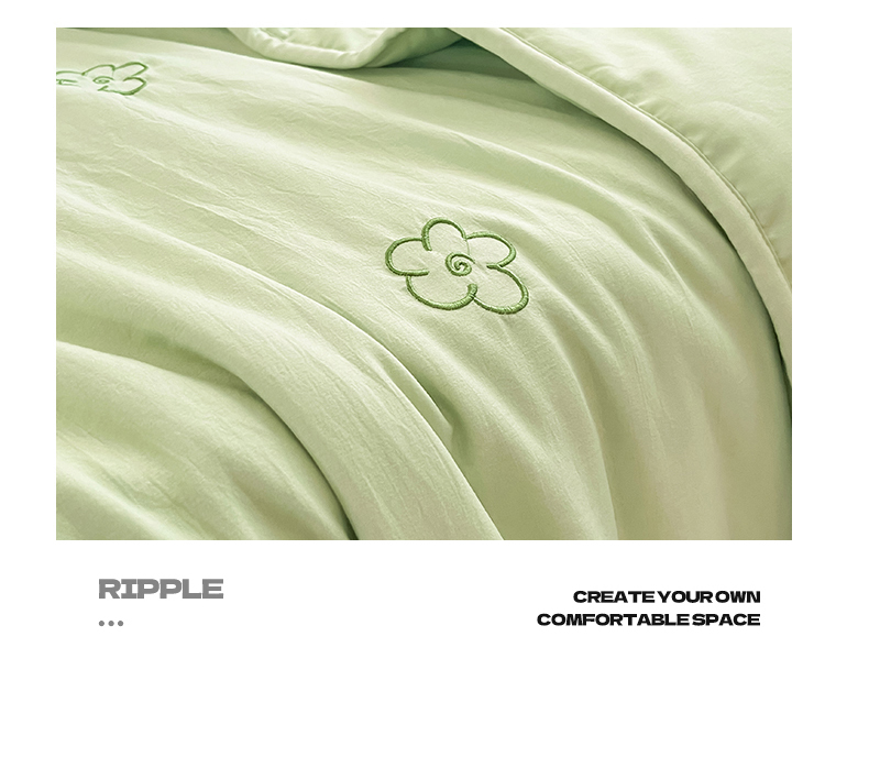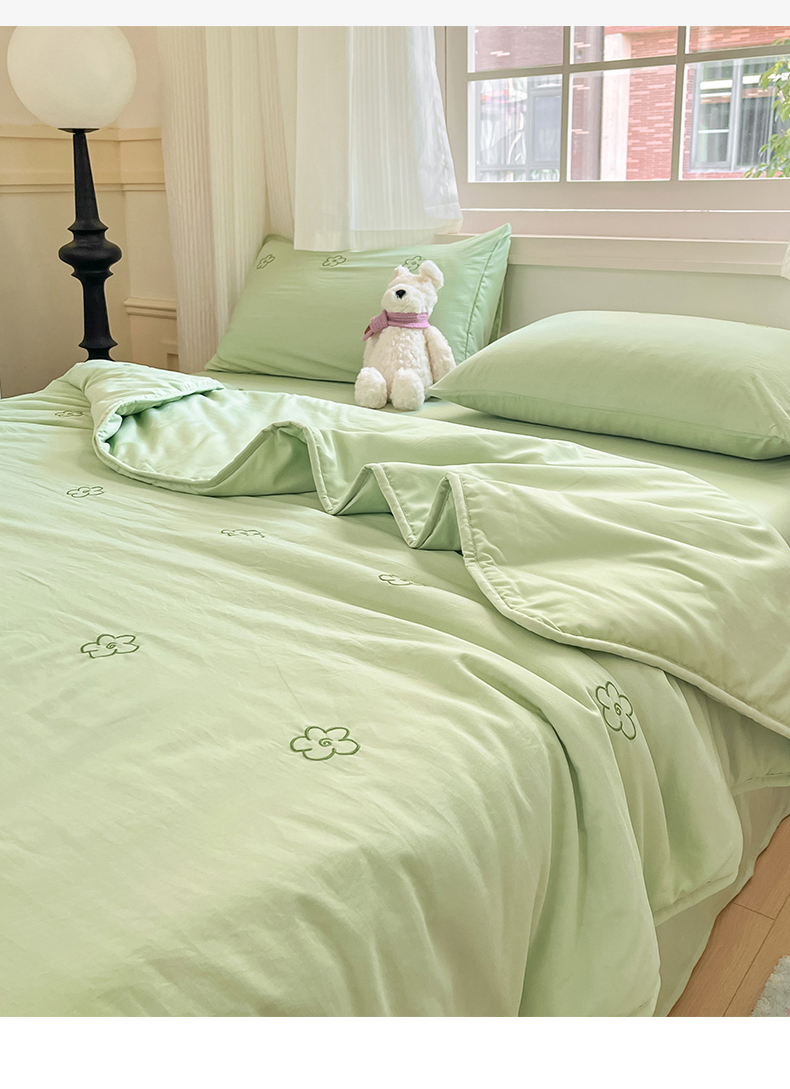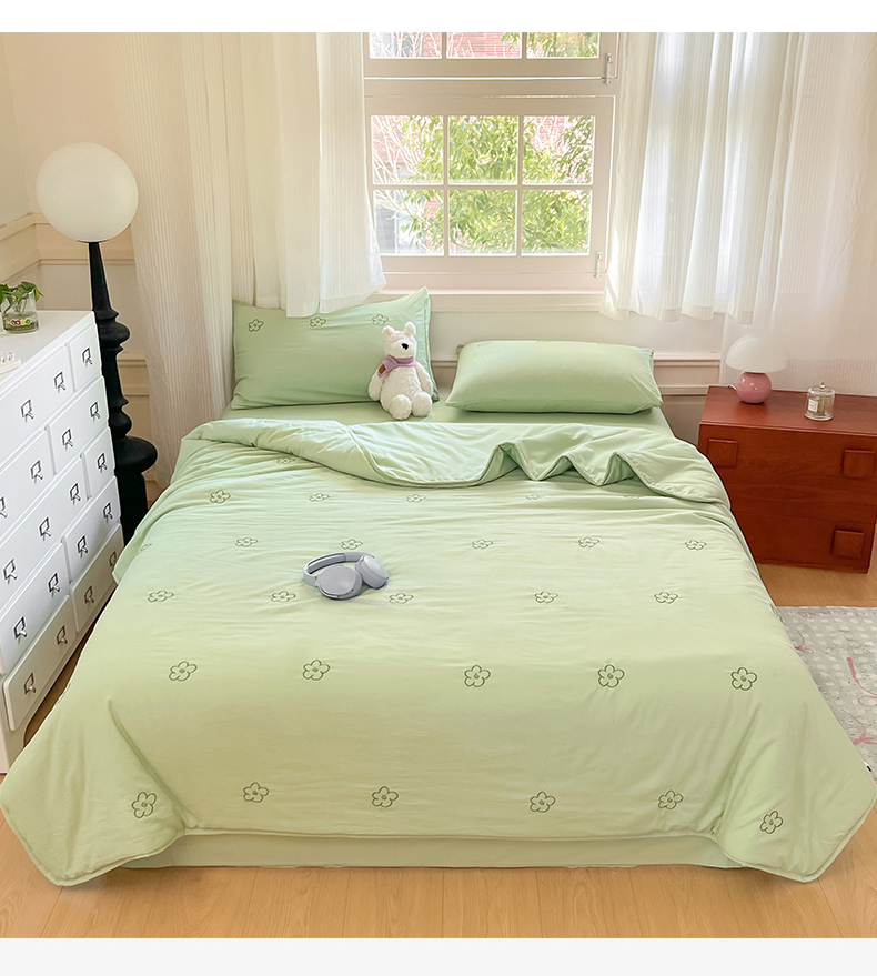 盛秋家纺 2026新款A类水洗棉刺绣夏被 灰绿花朵