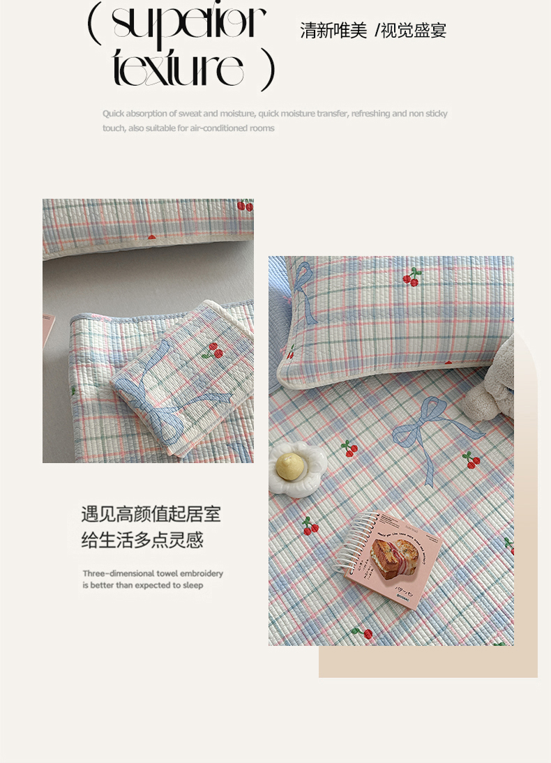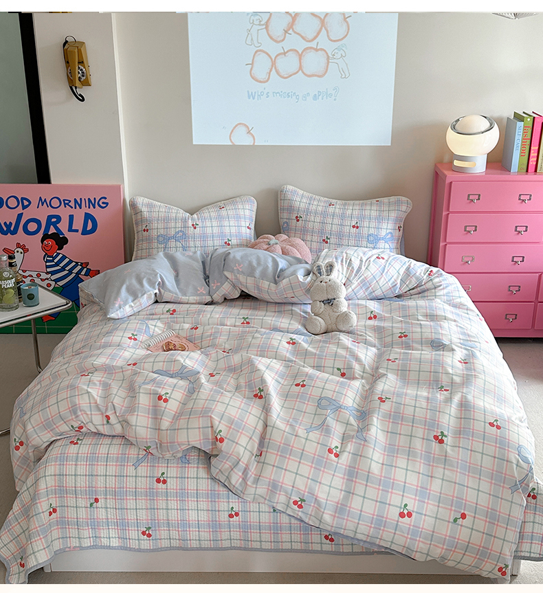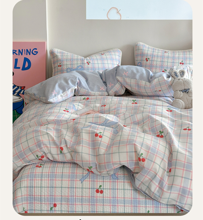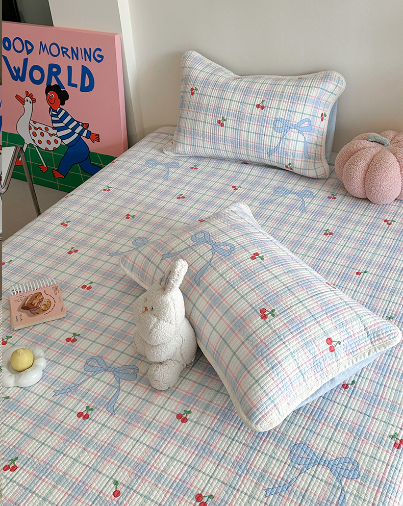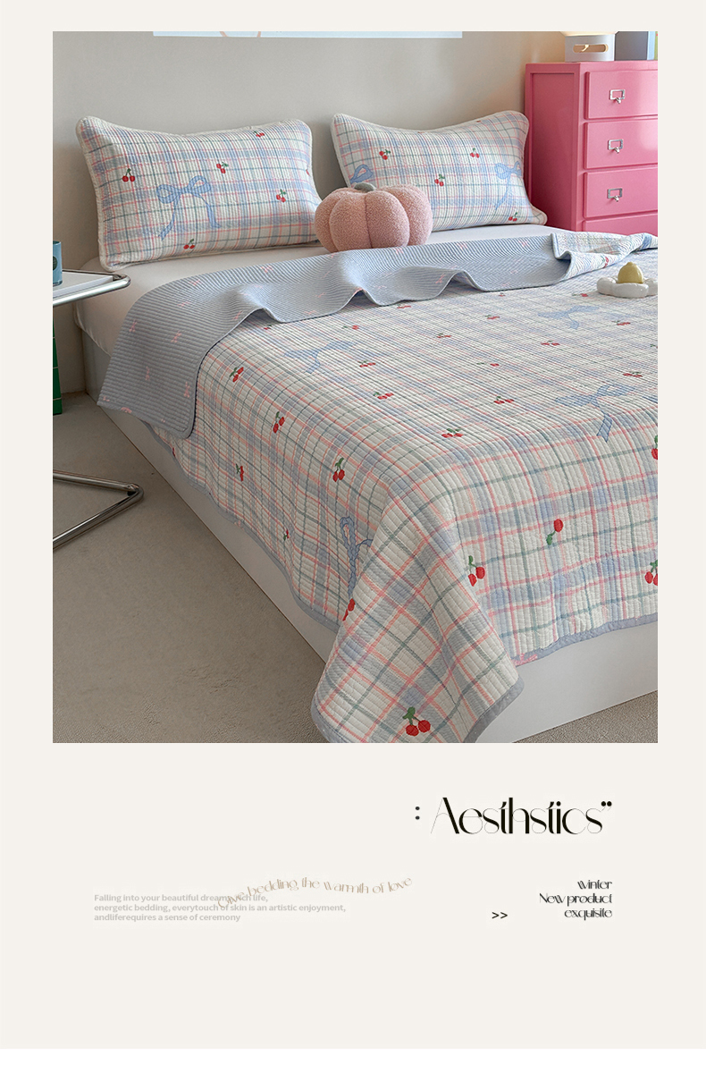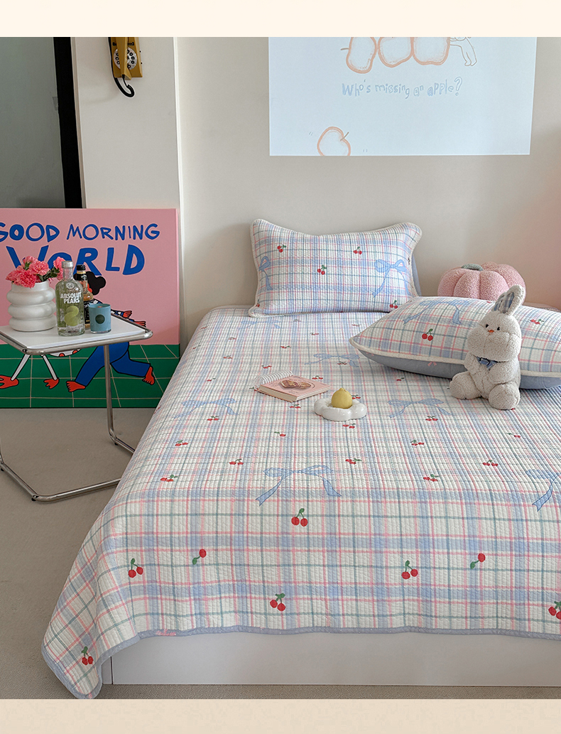 麦伦家居 2025新款高温砂洗全棉床盖印花床盖 樱桃乐园