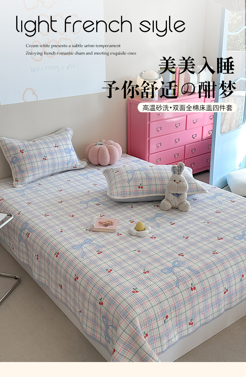 • 91家纺网 家纺一手货源 找家纺 麦伦家居 2025新款高温砂洗全棉床盖印花床盖 樱桃乐园