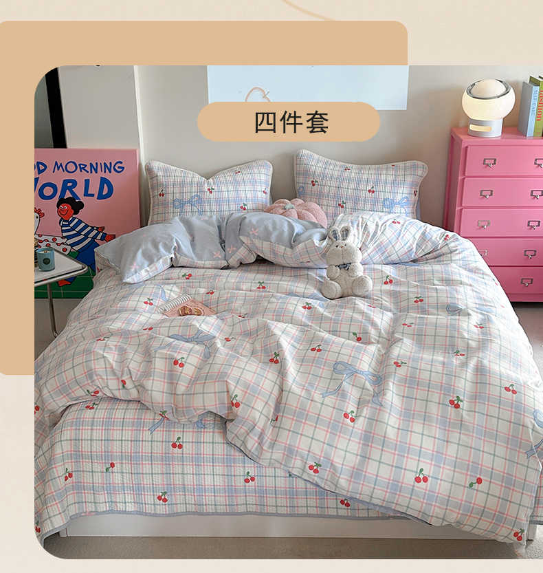 (总)麦伦家居 2026春夏新品13372全棉卡通小清新四件套,春日花语,焦糖小熊,笔记本,宾果时光,果子象,含羞草,蝴蝶结花朵粉,机灵猫,咖啡猫,快乐小星星,蕾丝小兔,漫漫花香,莓果熊,平安狗狗,时光里,线条汪汪,小玫瑰紫,紫樱桃