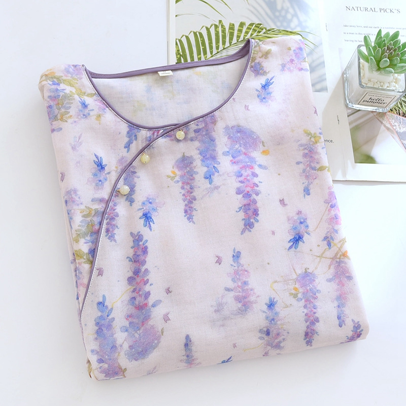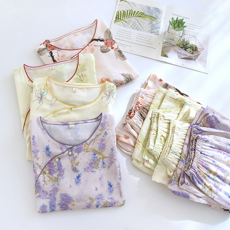 商品名称:洛兰沙家居馆【只代发】【只代发】 2025新款国风竹纤维鸟语花香春夏女睡衣大码长袖长裤自带凉感休闲套装 ls1306