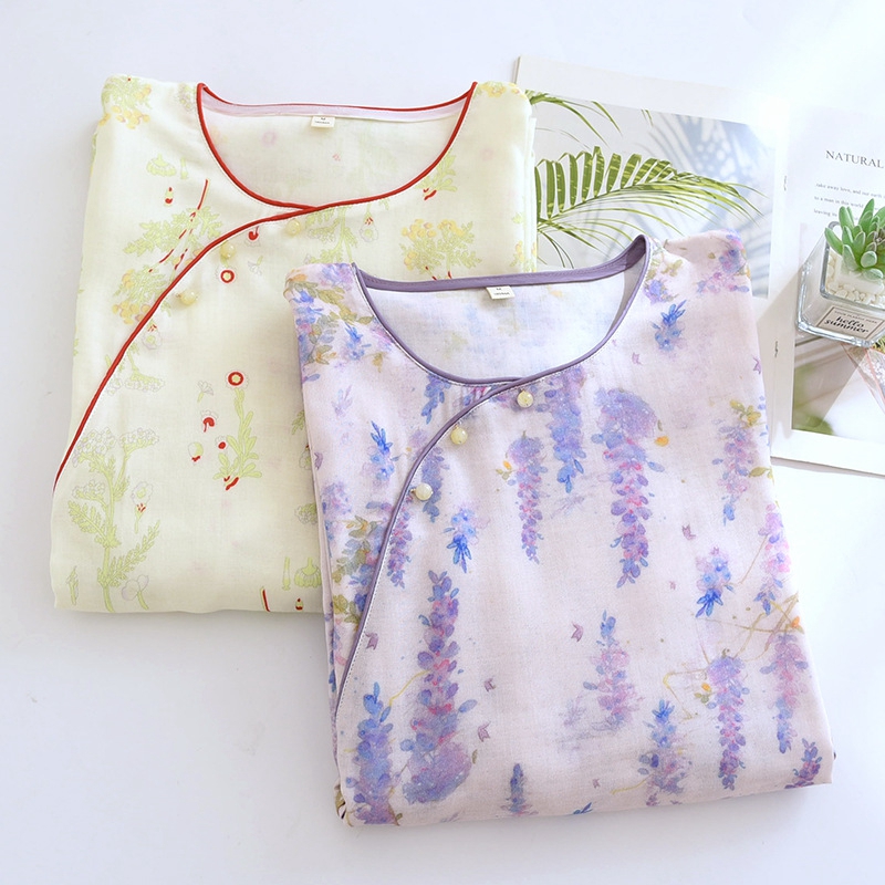 (总)洛兰沙家居馆 2025新款日系无印纯棉纱布情侣睡衣四季薄款长袖长裤翻领男女士简约家居服,红色,灰色,绿色