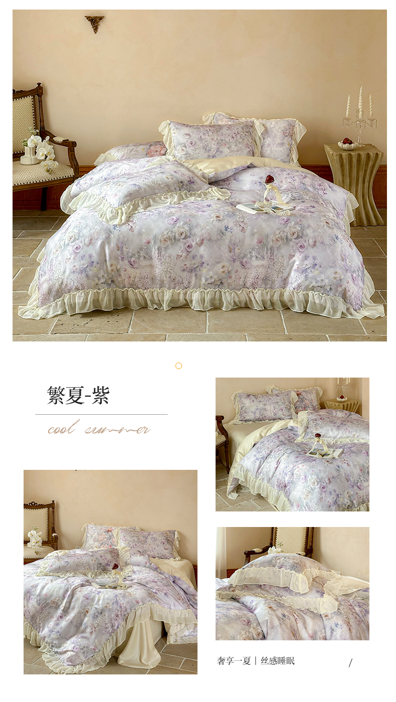 商品名称:沐晴家纺 2025春夏新品数码印花60兰精天丝云纱四件套 繁夏-紫