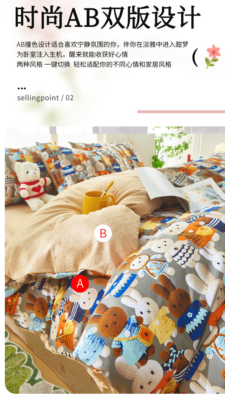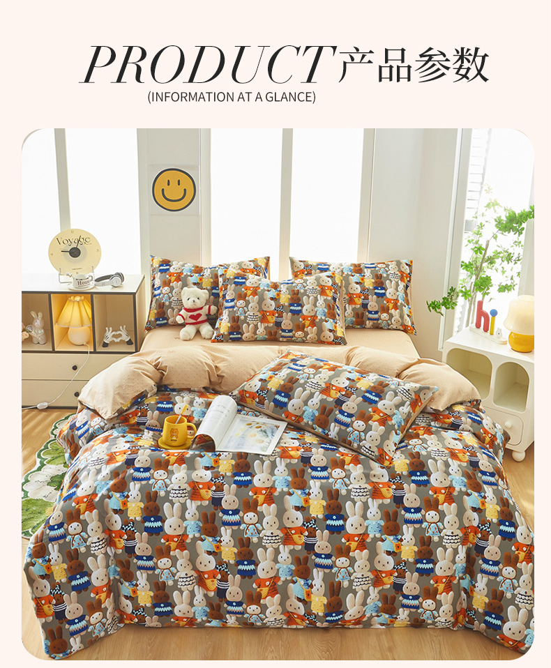 • 91家纺网 家纺一手货源 找家纺 黛妮雅 2025新款AB版全棉印花单被套床单枕套 幸运兔