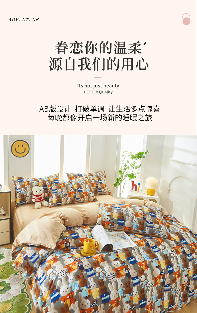 黛妮雅 2025新款AB版全棉印花单被套床单枕套 幸运兔