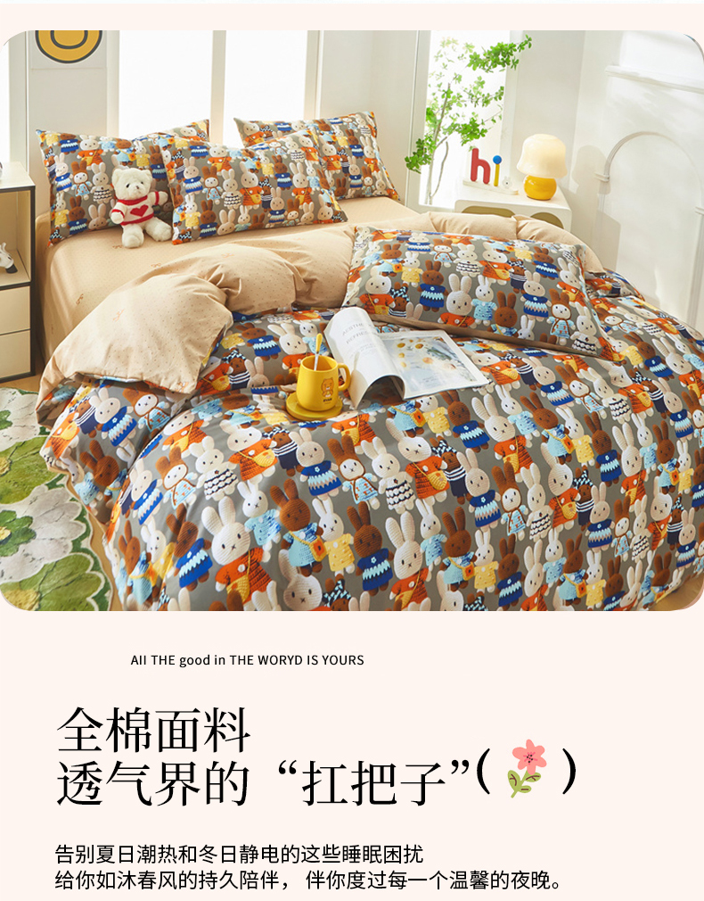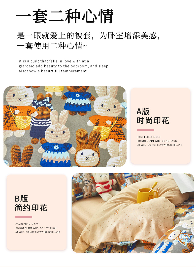 当前位置: 91家纺网 > 商品网购 > 床上用品 > 被套 > 黛妮雅 2025新款AB版全棉印花单被套床单枕套 幸运兔