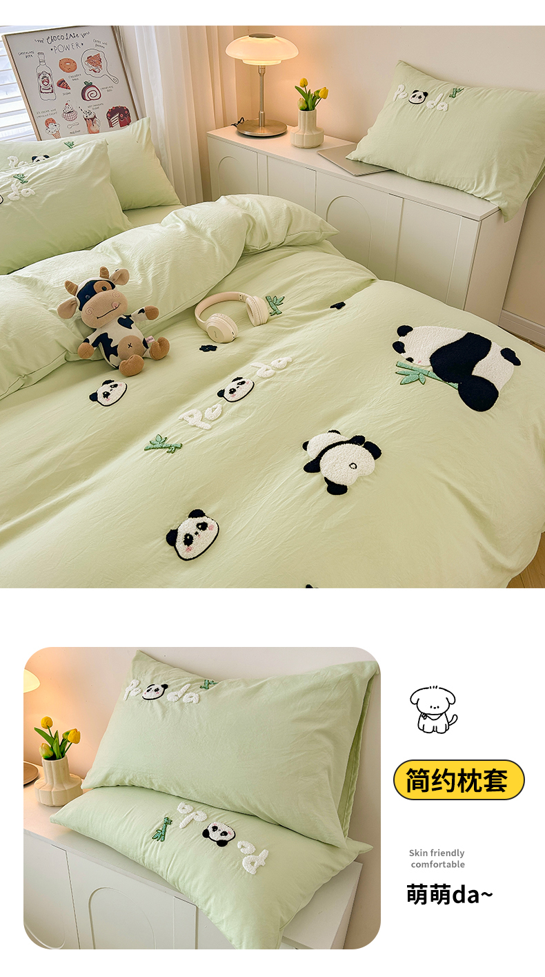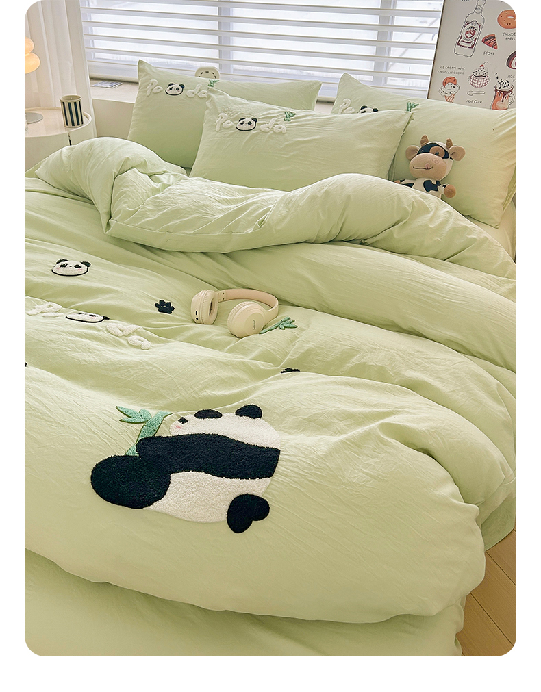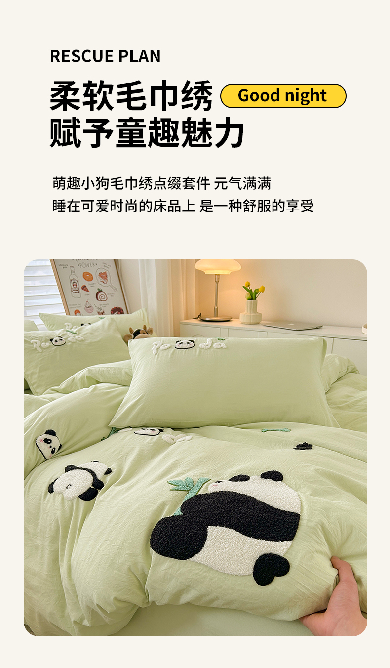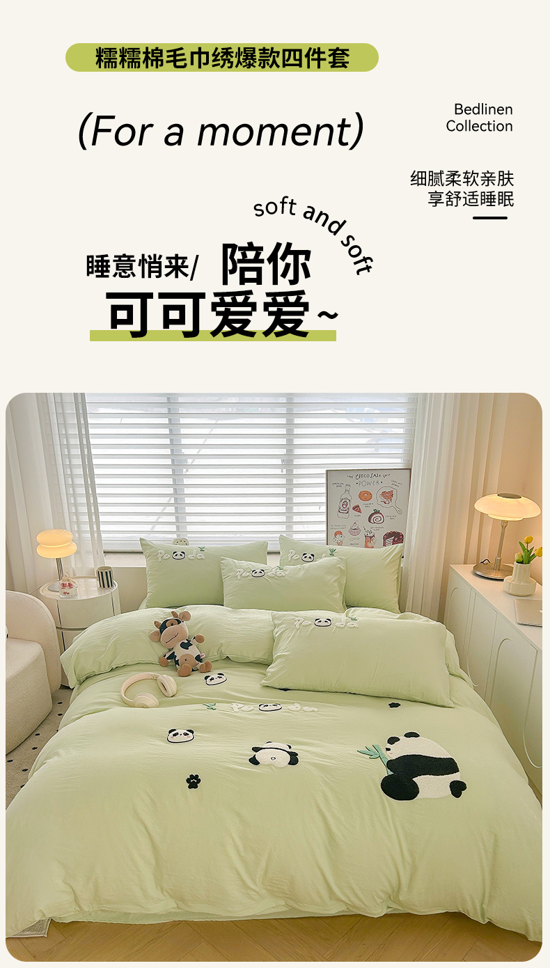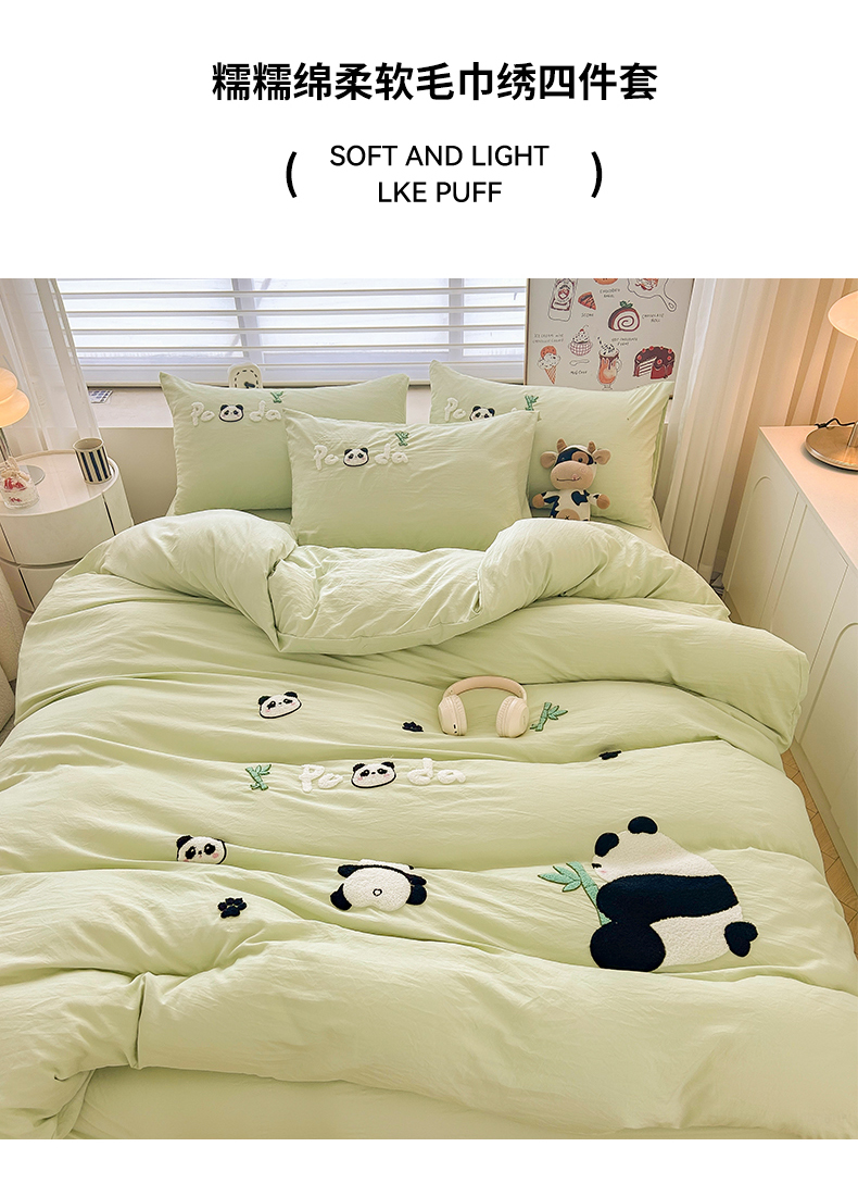 包小包 2025新款糯糯绵毛巾绣可爱卡通爆款四件套 小熊猫-绿