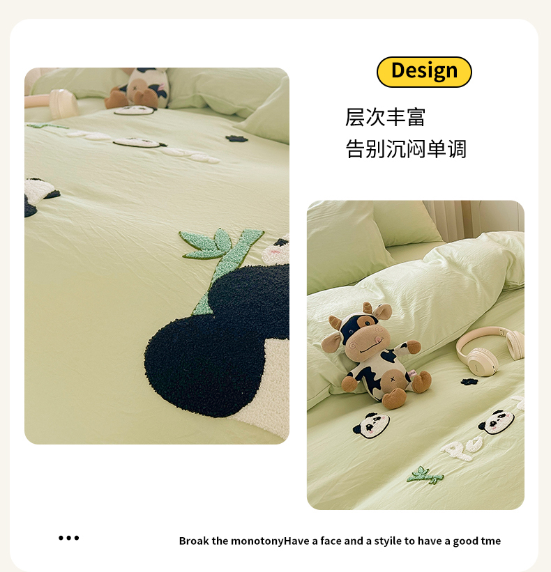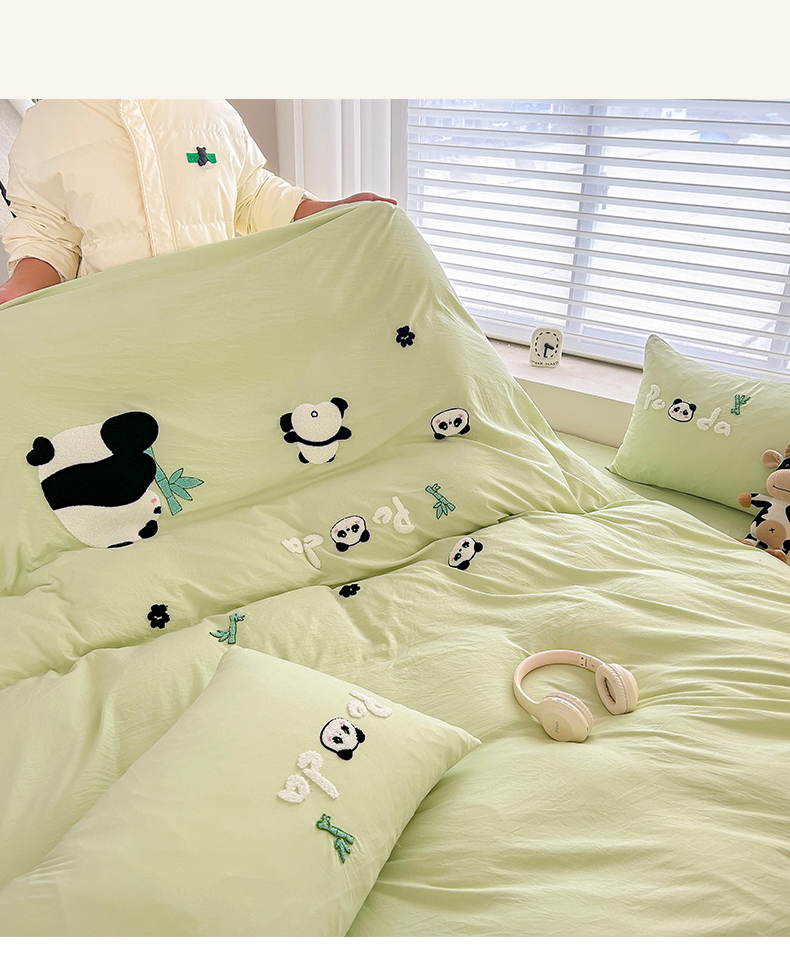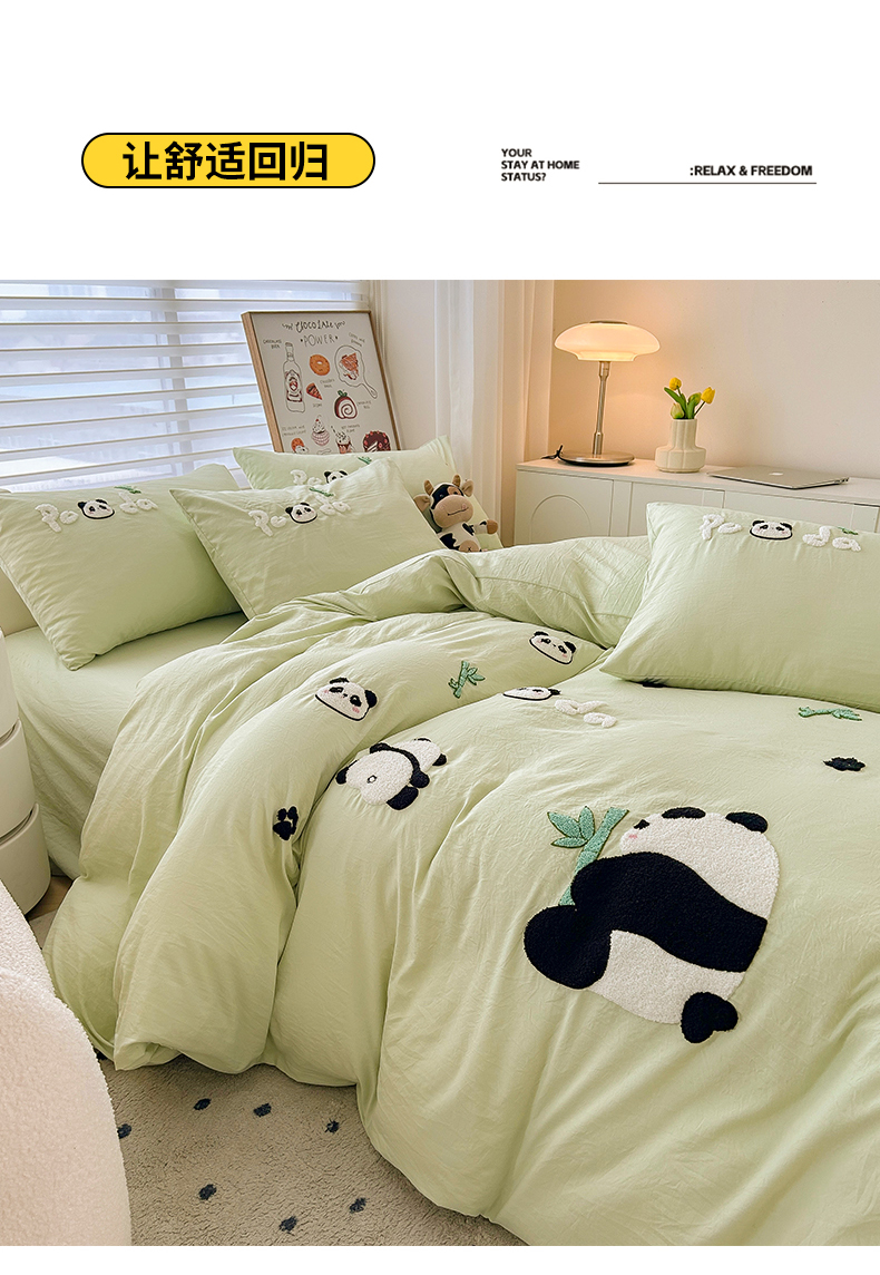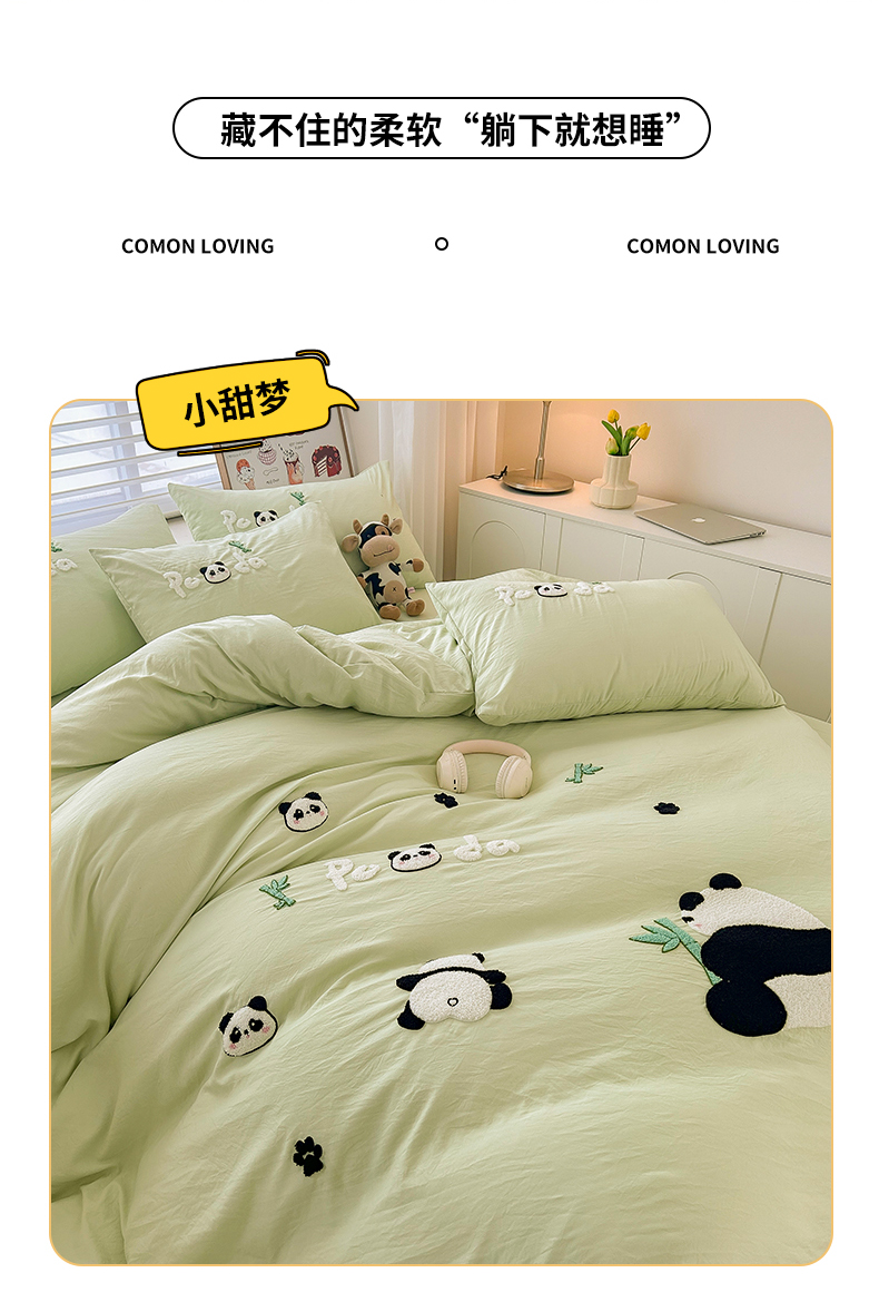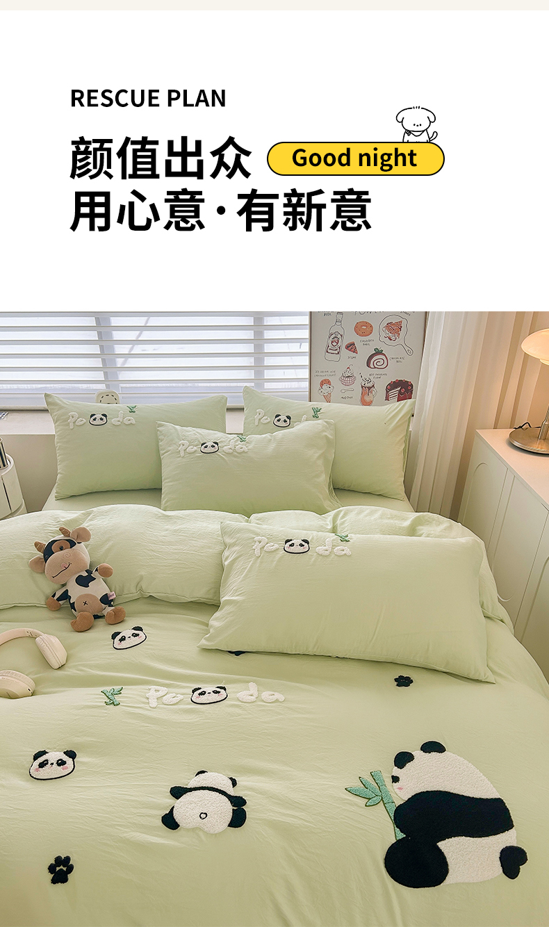 包小包 2025新款糯糯绵毛巾绣可爱卡通爆款四件套 小熊猫-绿