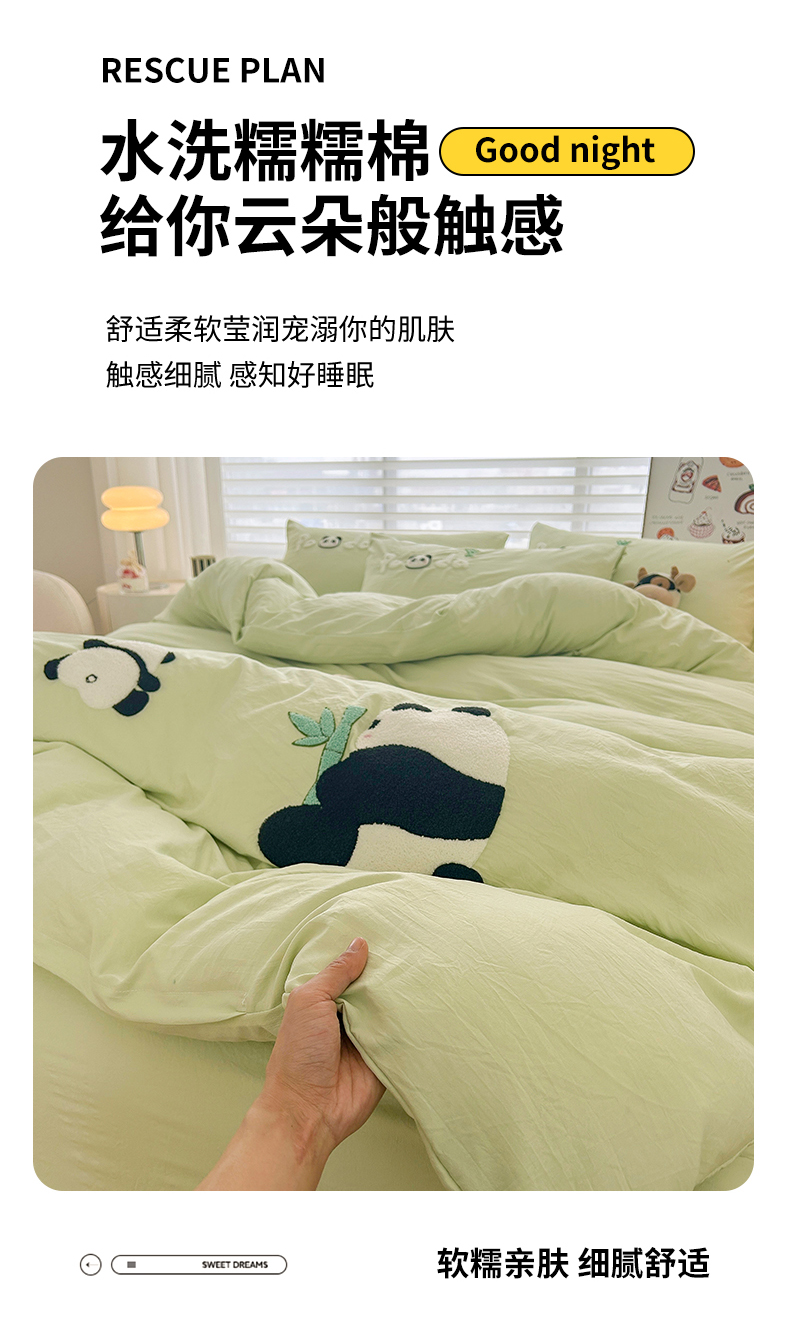 商品名称:包小包 2025新款糯糯绵毛巾绣可爱卡通爆款四件套 小熊猫-绿