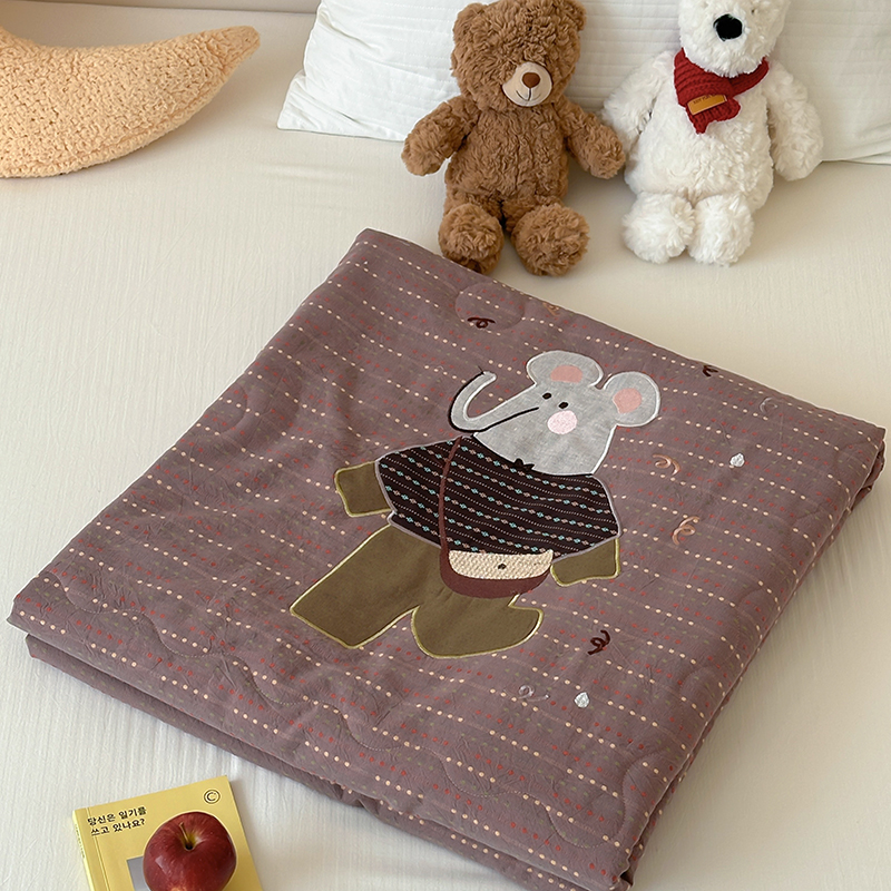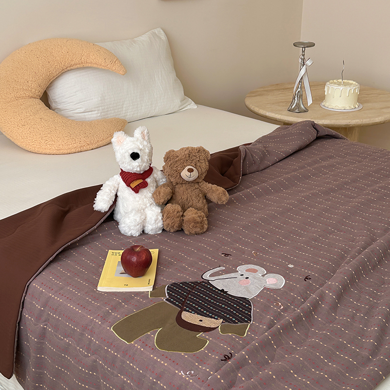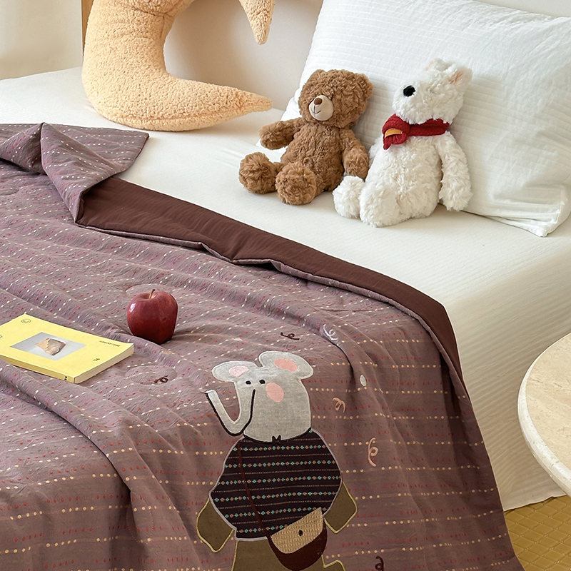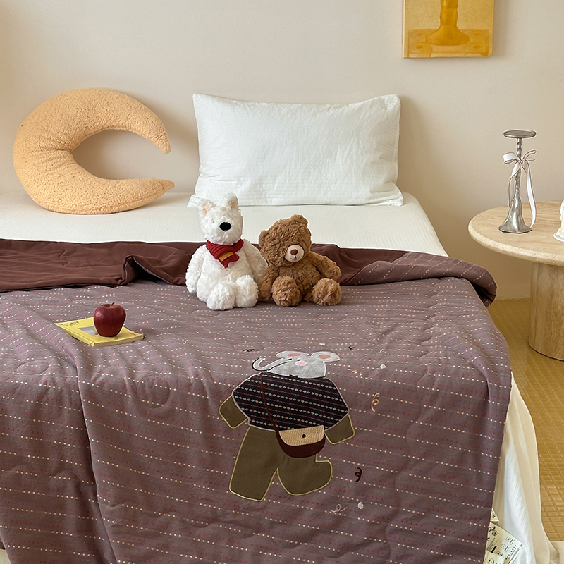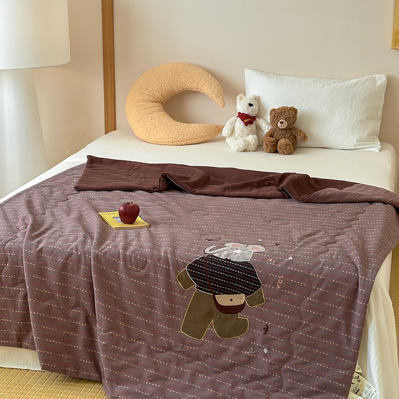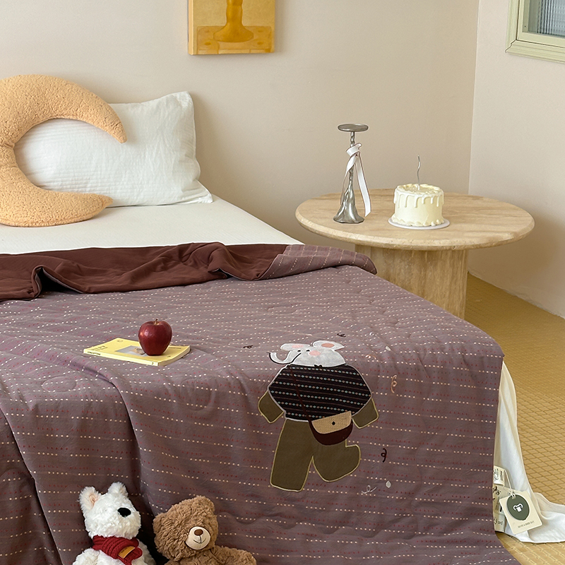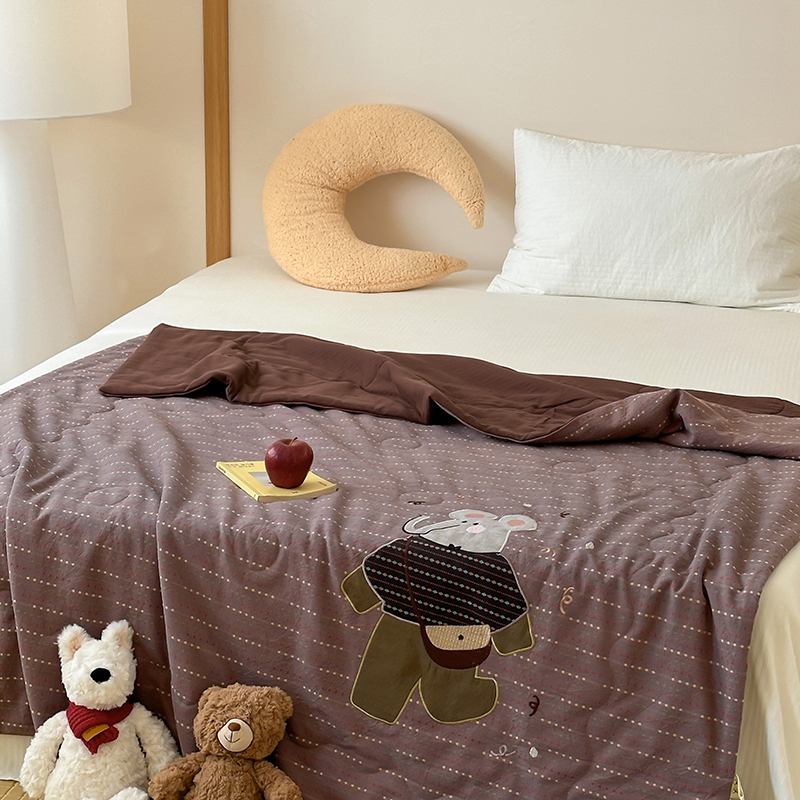(总)月夏 2025新款全棉数码印花高克重豆豆被,快乐狗,猫猫小画家,熊熊乐园,油画小兔