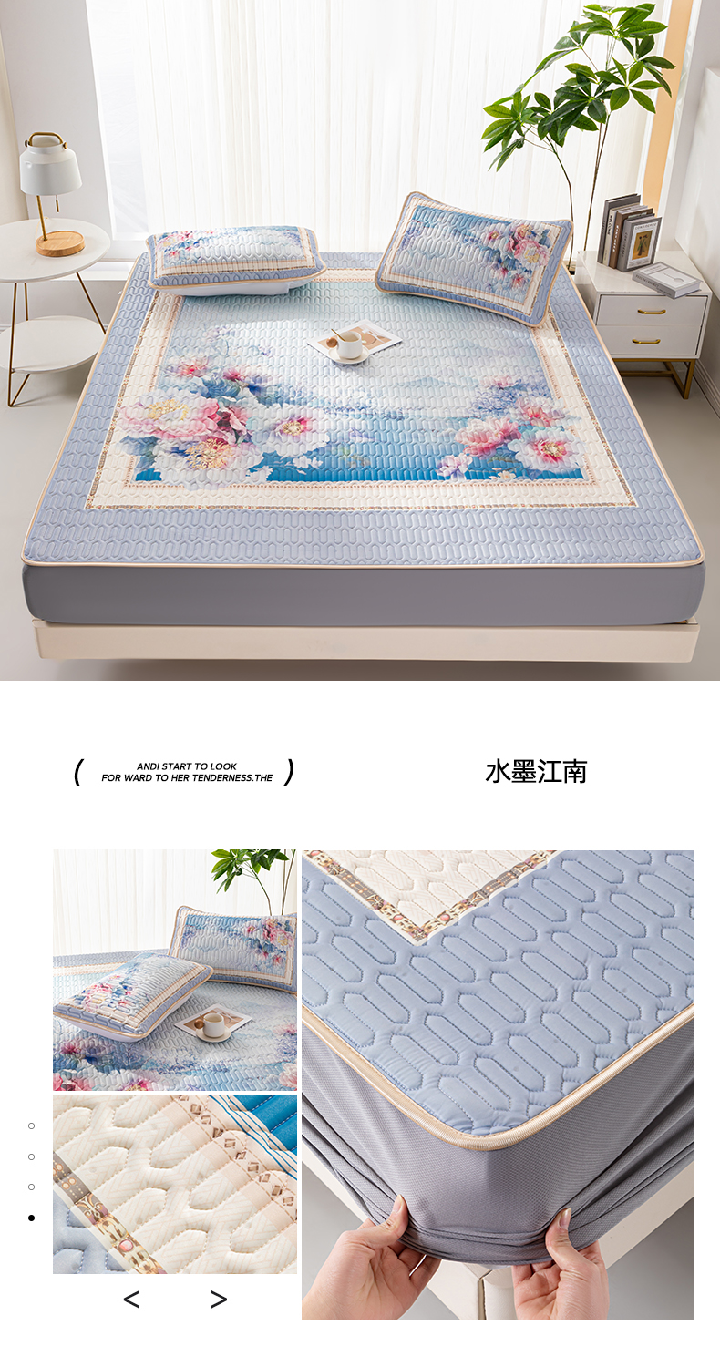 商品名称:美丽折家纺 2025新款6mm厚乳胶床笠款三件套 水墨江南