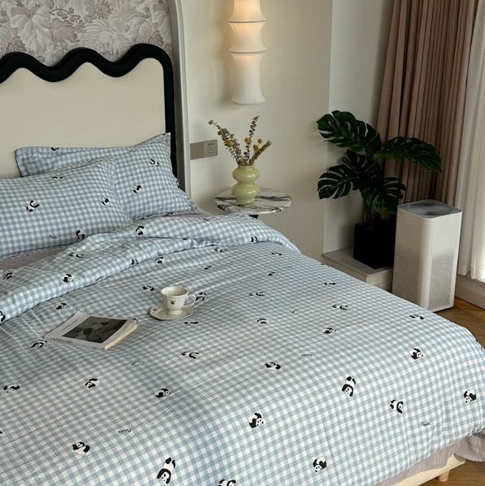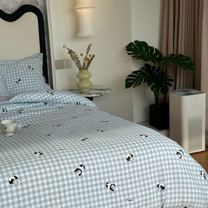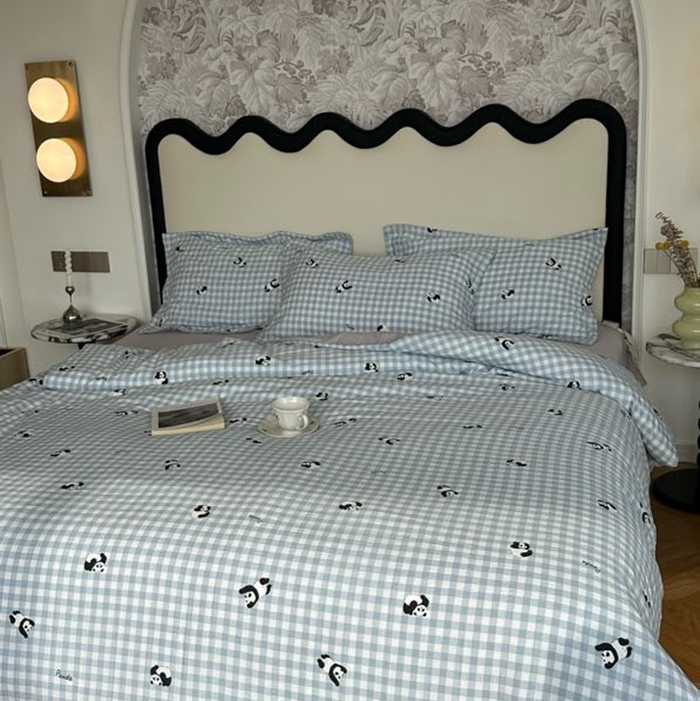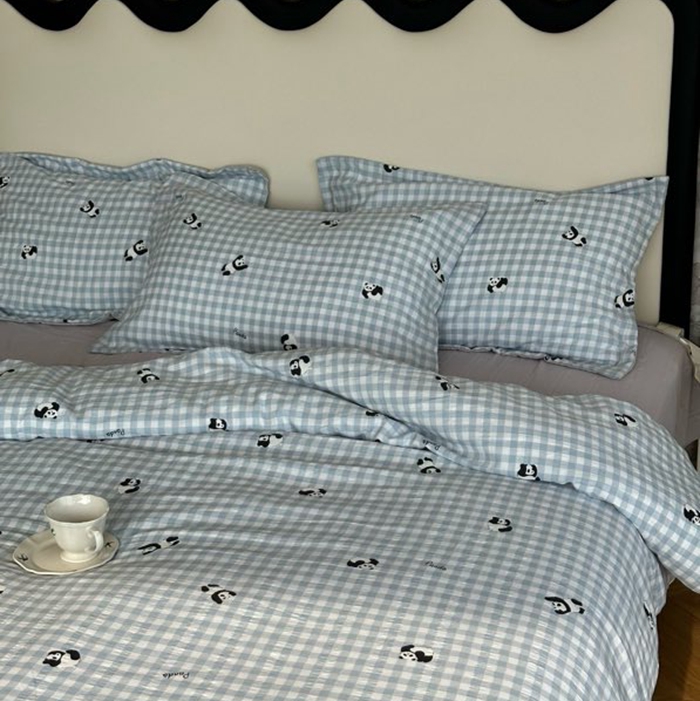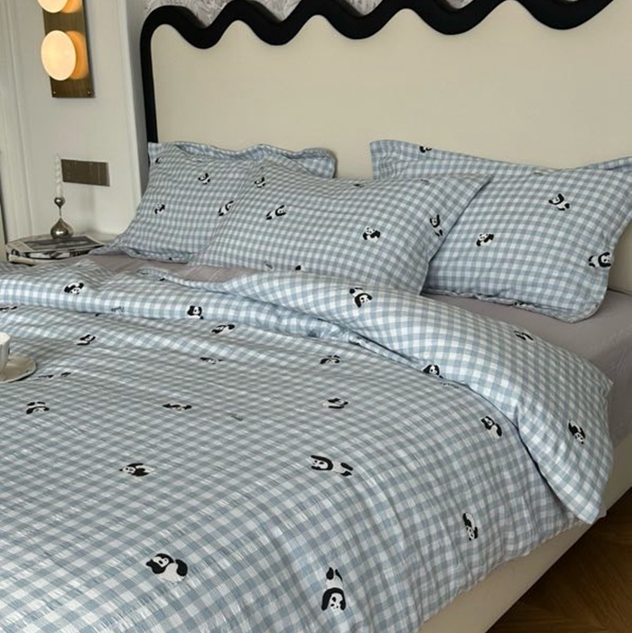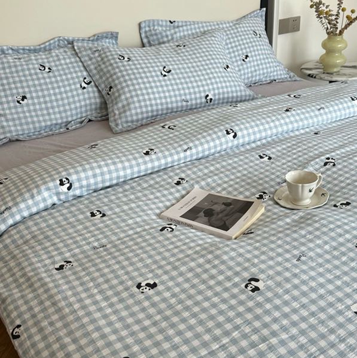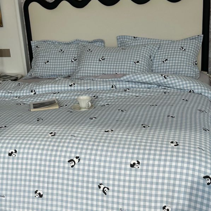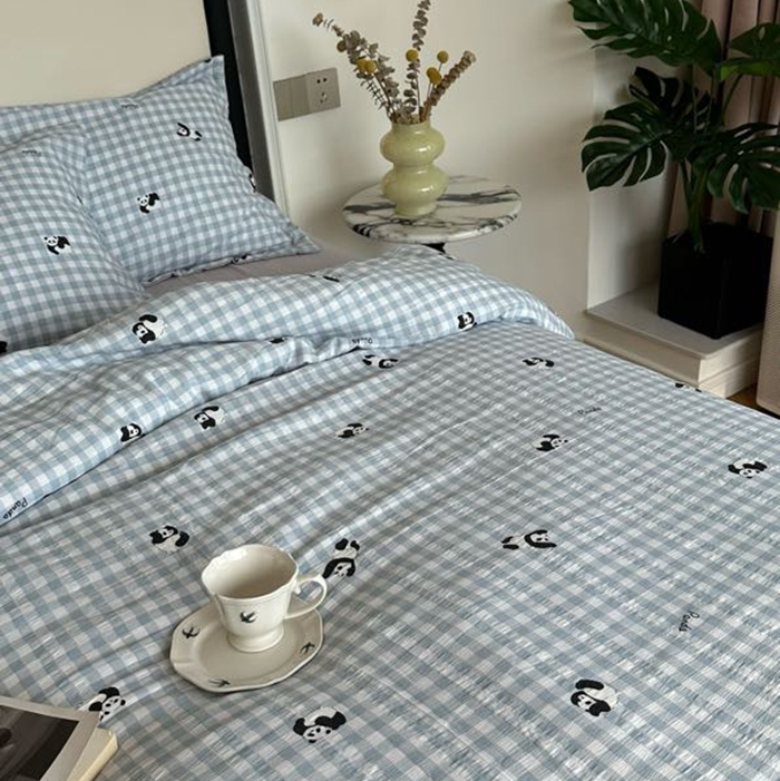 美丽坊 2025新款竹纱棉四件套 蓝格子熊猫