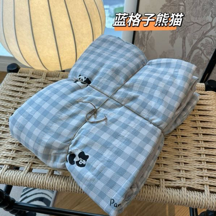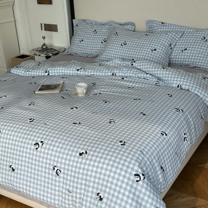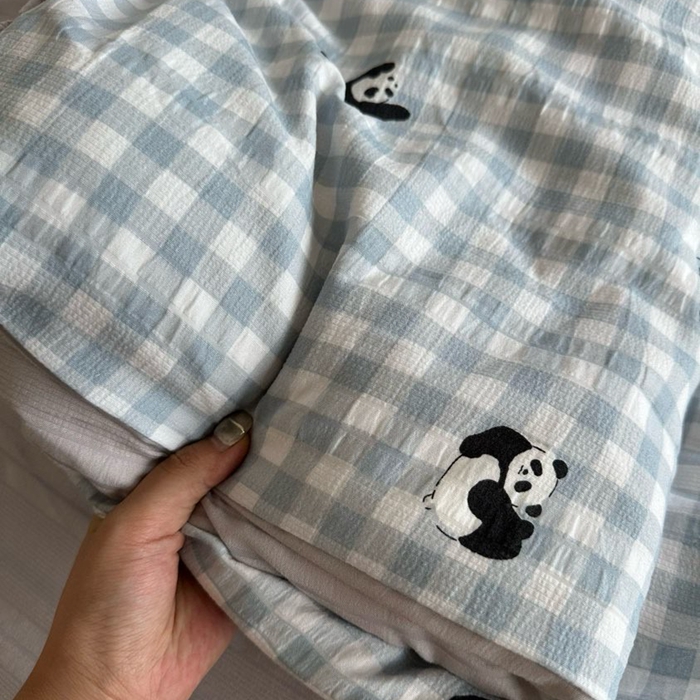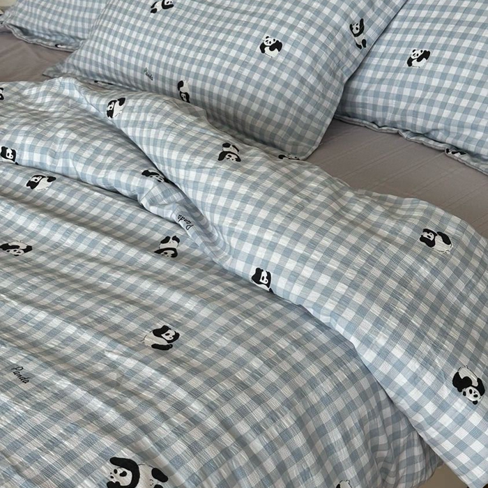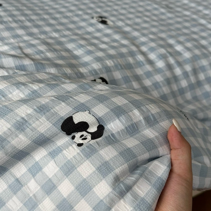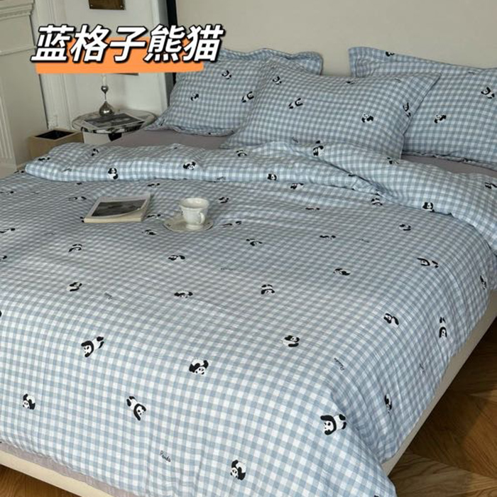 商品名称:美丽坊 2025新款竹纱棉四件套 蓝格子熊猫