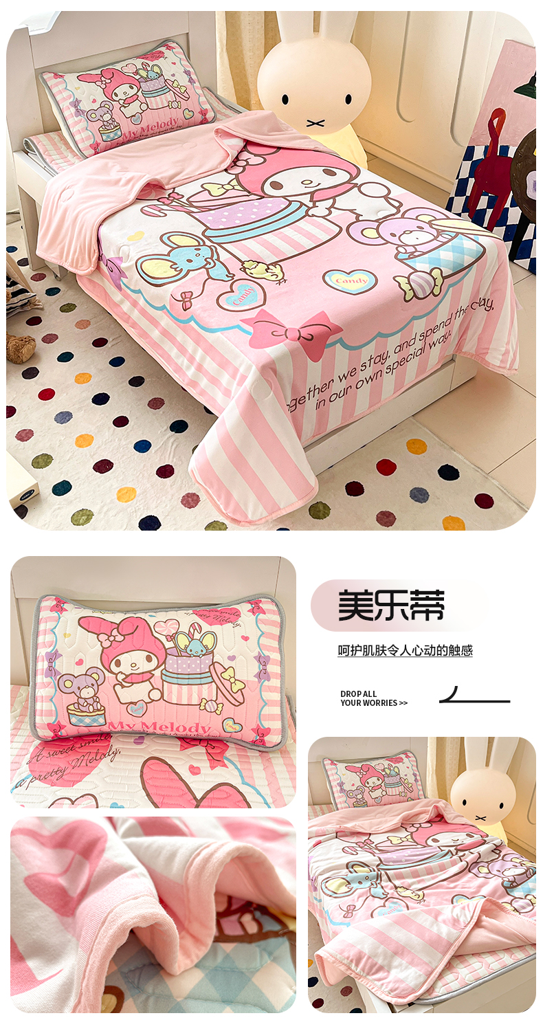 (总)花满路 2024新款有氨凉感丝卡通印花豆豆被儿童被夏被被子,玉桂狗,库洛米,KT猫,卡帕狗,米乐蒂