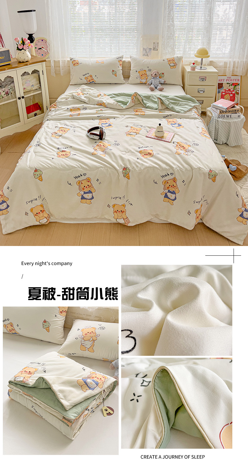 商品名称:2025春夏新款嵌绳款云柔水洗棉单夏被夏凉被空调被 嵌绳夏被-甜筒小熊