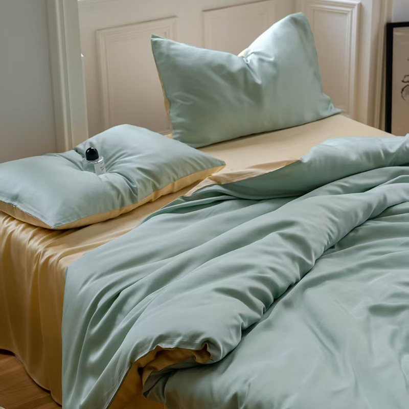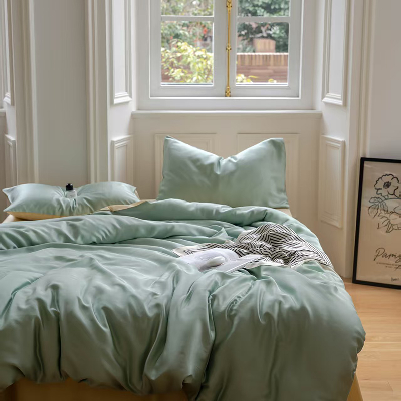 当前位置: 91家纺网 > 商品网购 > 床品套件 > 四件套 > 莱赛尔四件套 > 未来家居 2025新款60S兰精天丝纯色四件套 浅艾绿-香槟金