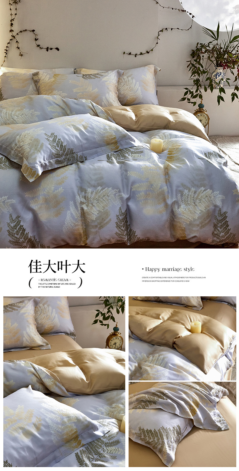 商品名称:未来家居 2025春夏新款100支莱赛尔天丝贡缎纯色印花系列高端礼盒四件套 佳大叶大