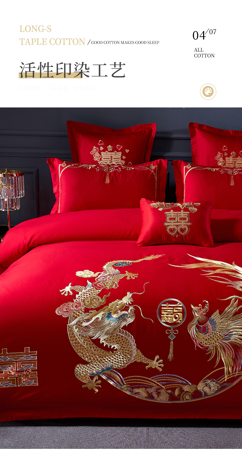 富之雅2024款全棉长绒棉婚庆四件套多件套 龙凤喜缘,龙凤喜缘