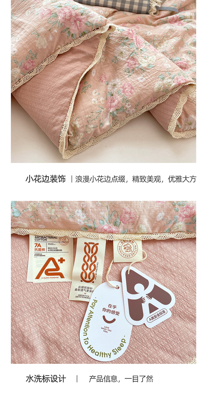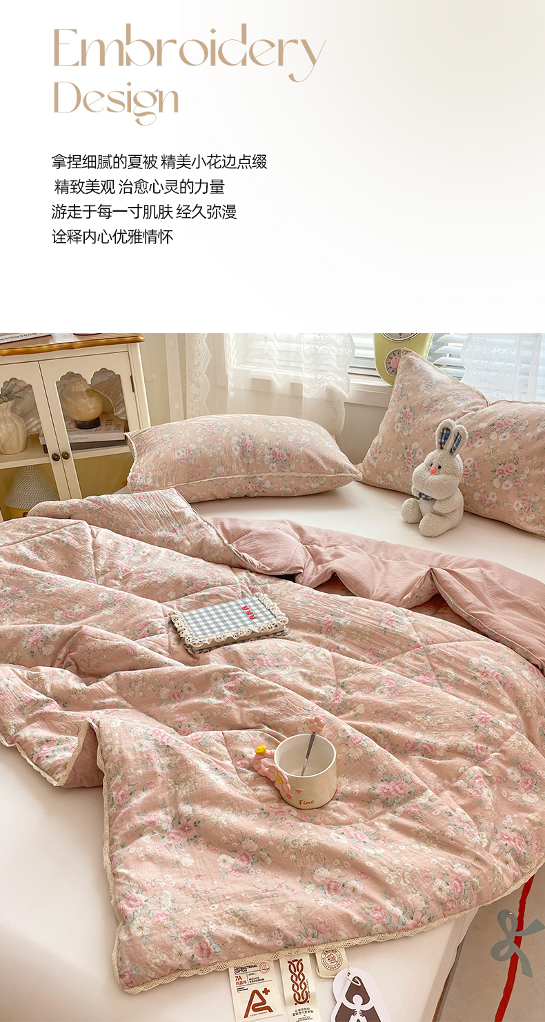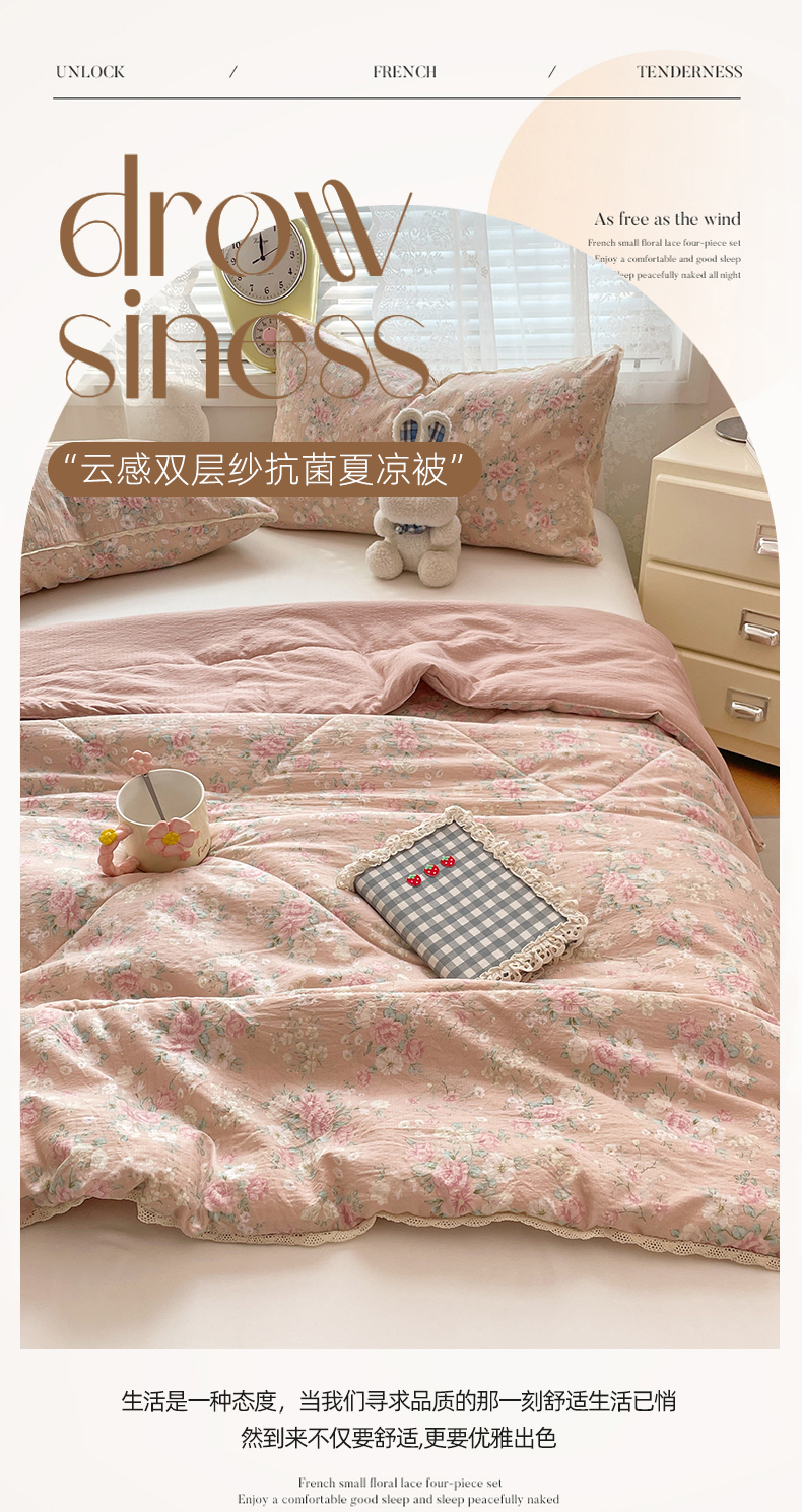 商品名称:优承佳生活馆 2025新款云感双层纱浪漫小花边抗菌夏被子被芯 黛绮丽
