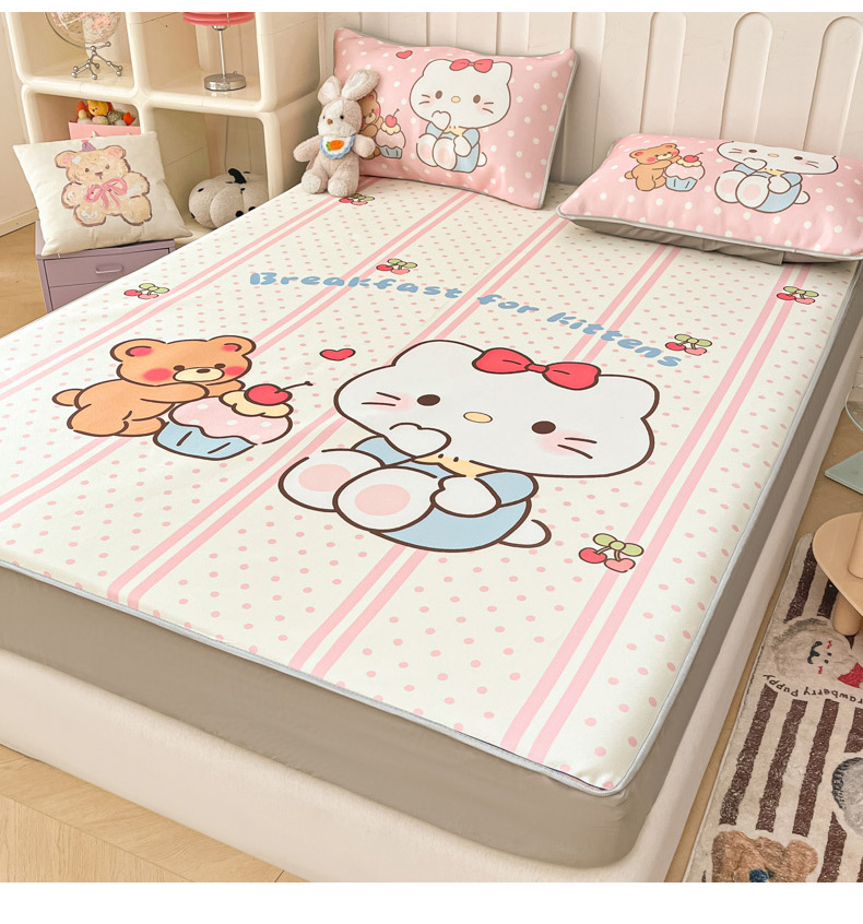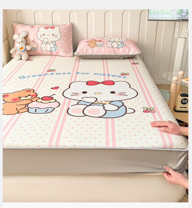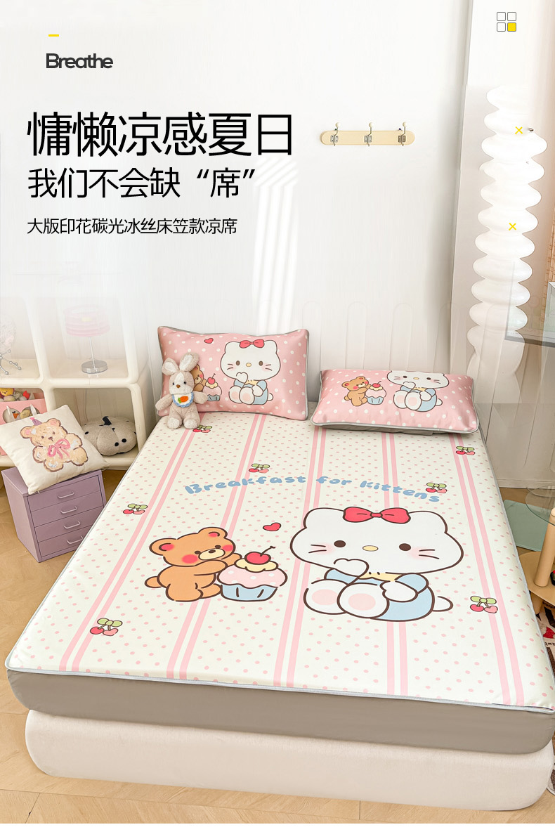 商品名称:2025新款大版印花冰丝席床笠 床笠-猫咪伙伴