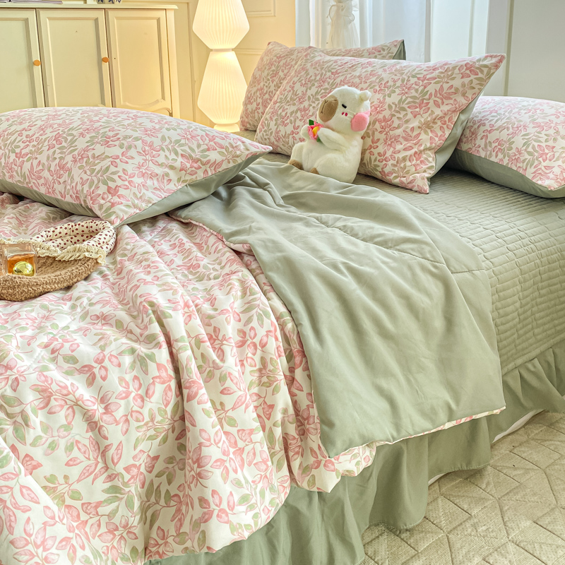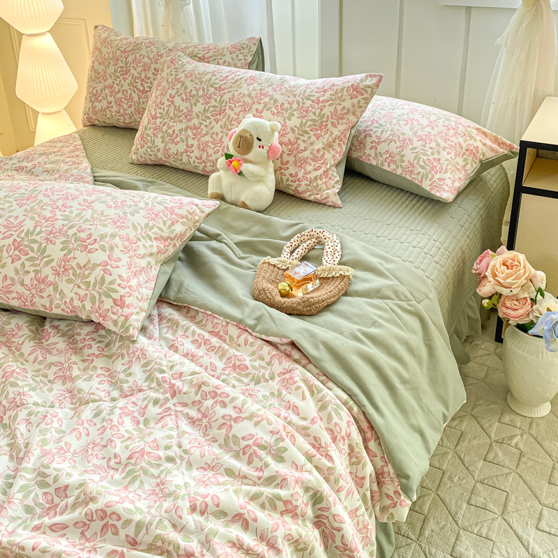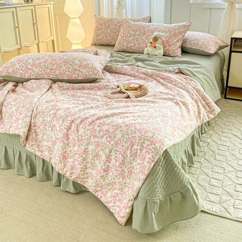 商品名称:一比一家纺 2025新款针织双层纱夏被床盖四件套单夏被单床盖单品 清荷