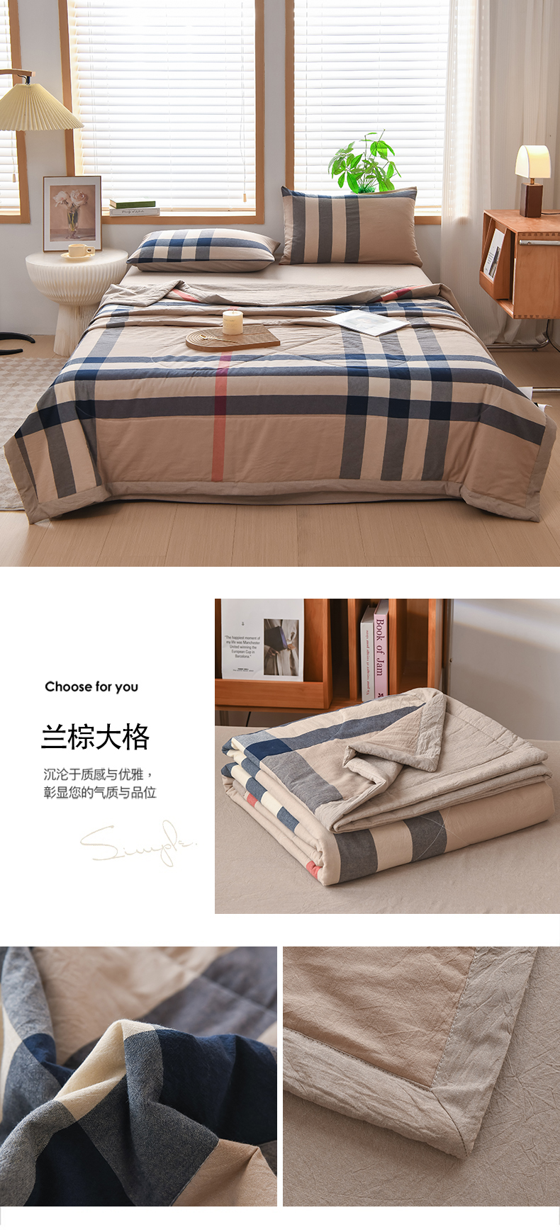 商品名称:圣尔雅家纺 2025新款里外全棉色织夏被新疆棉花被纯棉被子空调被夏凉被 兰棕大格