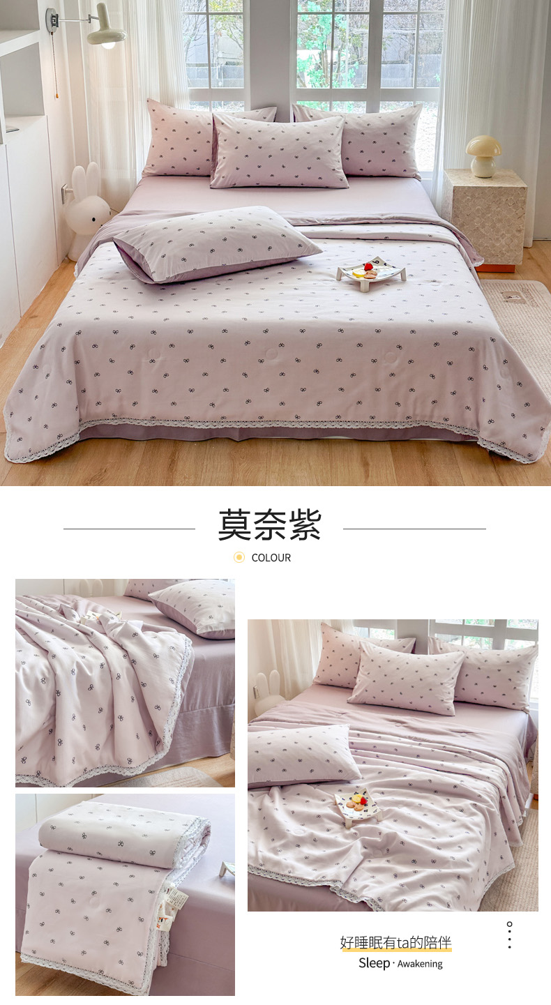 斯卡诺家纺 2025新款针织双层纱韩版花边夏被四件套夏季夏凉被空调被 莫奈紫