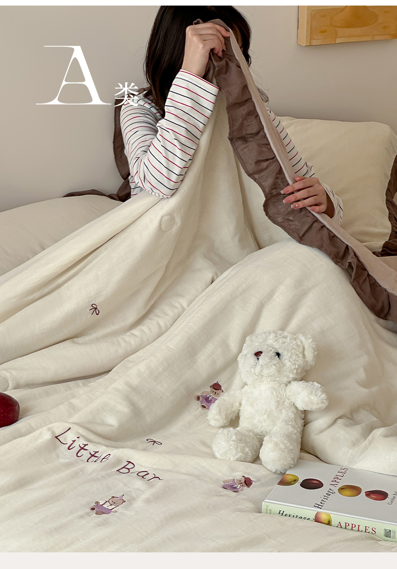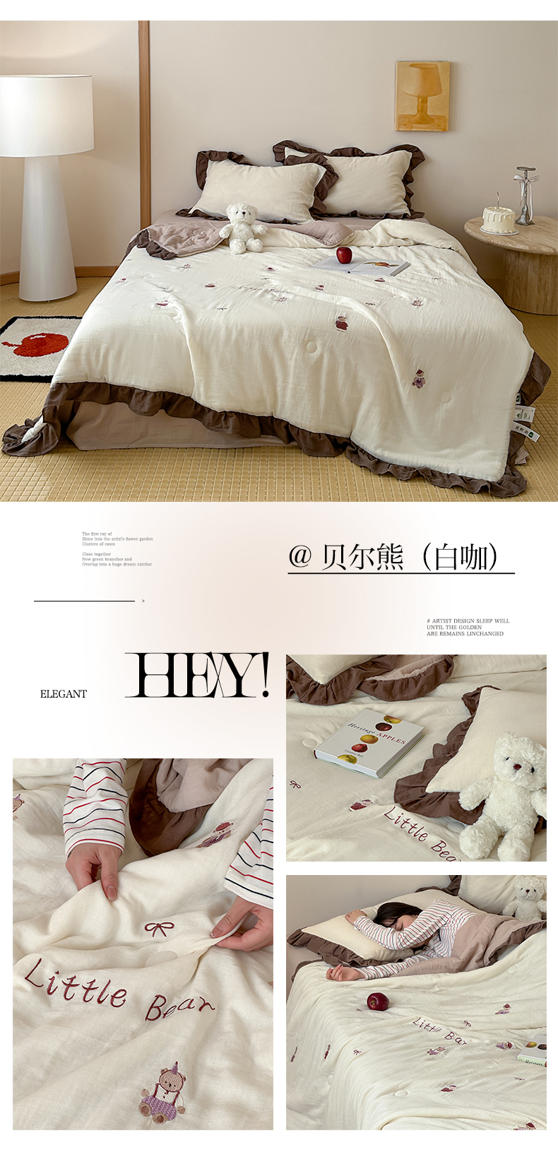 当前位置: 91家纺网 > 商品网购 > 床品套件 > 四件套 > 全棉普通四件套 > 卡巴伦2025新款A类全棉双层皱皱纱绣花娜雅醋酯纤维夏被四件套 贝尔熊(白咖)