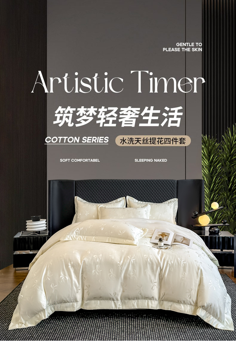 狂想家 2025新款高奢提花水洗天丝系列四件套 情结奶昔白