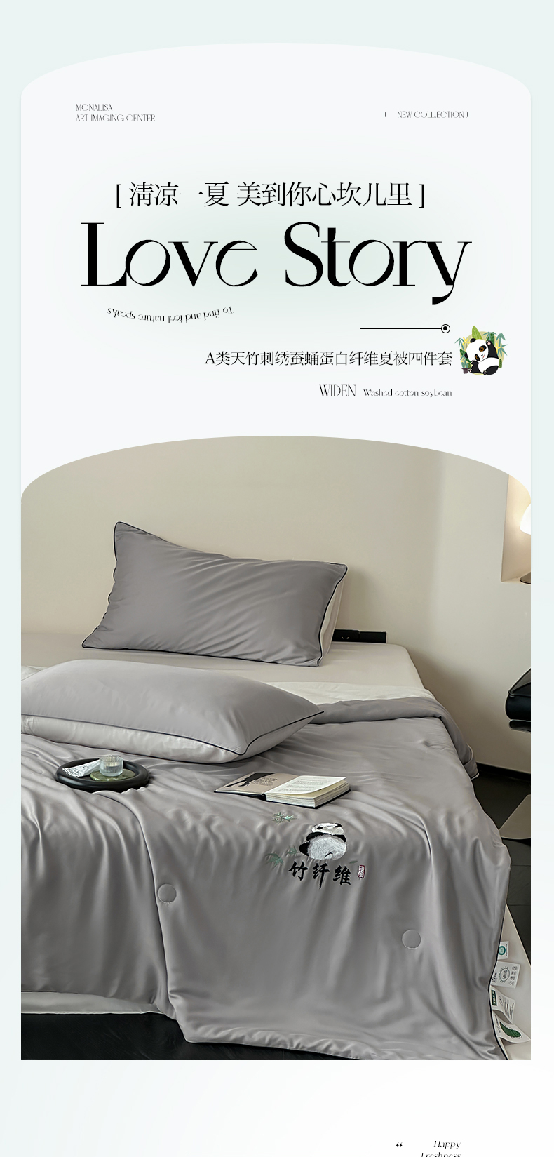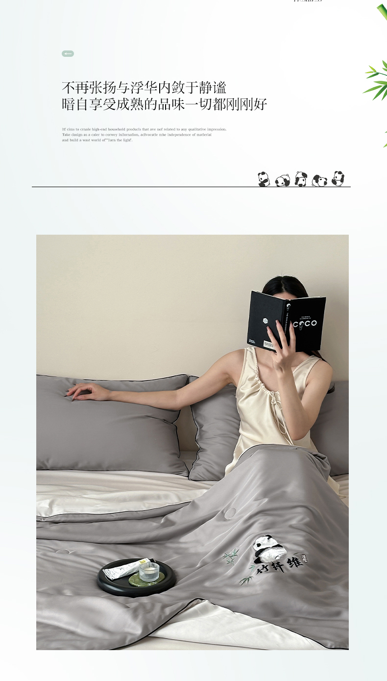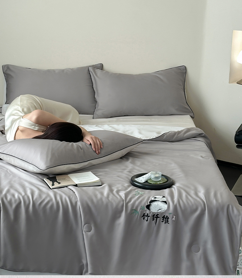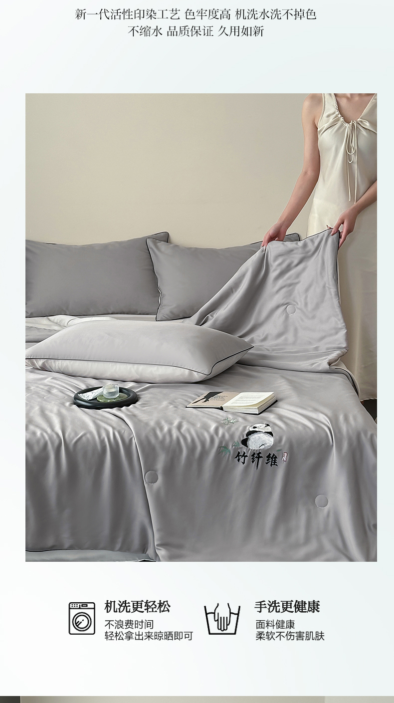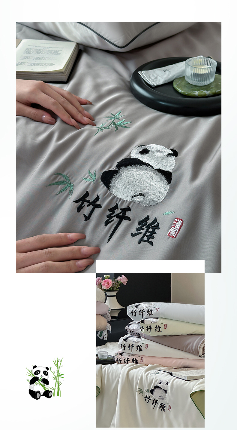 当前位置: 91家纺网 > 商品网购 > 被子 > 夏被 > 卡巴伦2025新款A类天竹刺绣蚕蛹蛋白纤维夏被四件套 熊猫-绅士灰