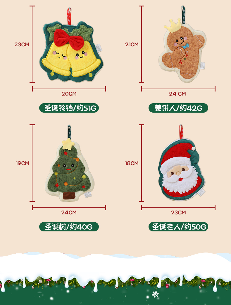 当前位置: 91家纺网 > 商品网购 > 居家日用 > 毛巾/浴巾/浴袍 > 手巾/手帕 > 彩虹毛巾 2025新款珊瑚绒卡通可挂式加厚吸水不掉毛可爱小毛巾厨房洗手间挂巾便携式懒人擦手布-圣诞系列 饼干人21*24cm 擦手巾/只